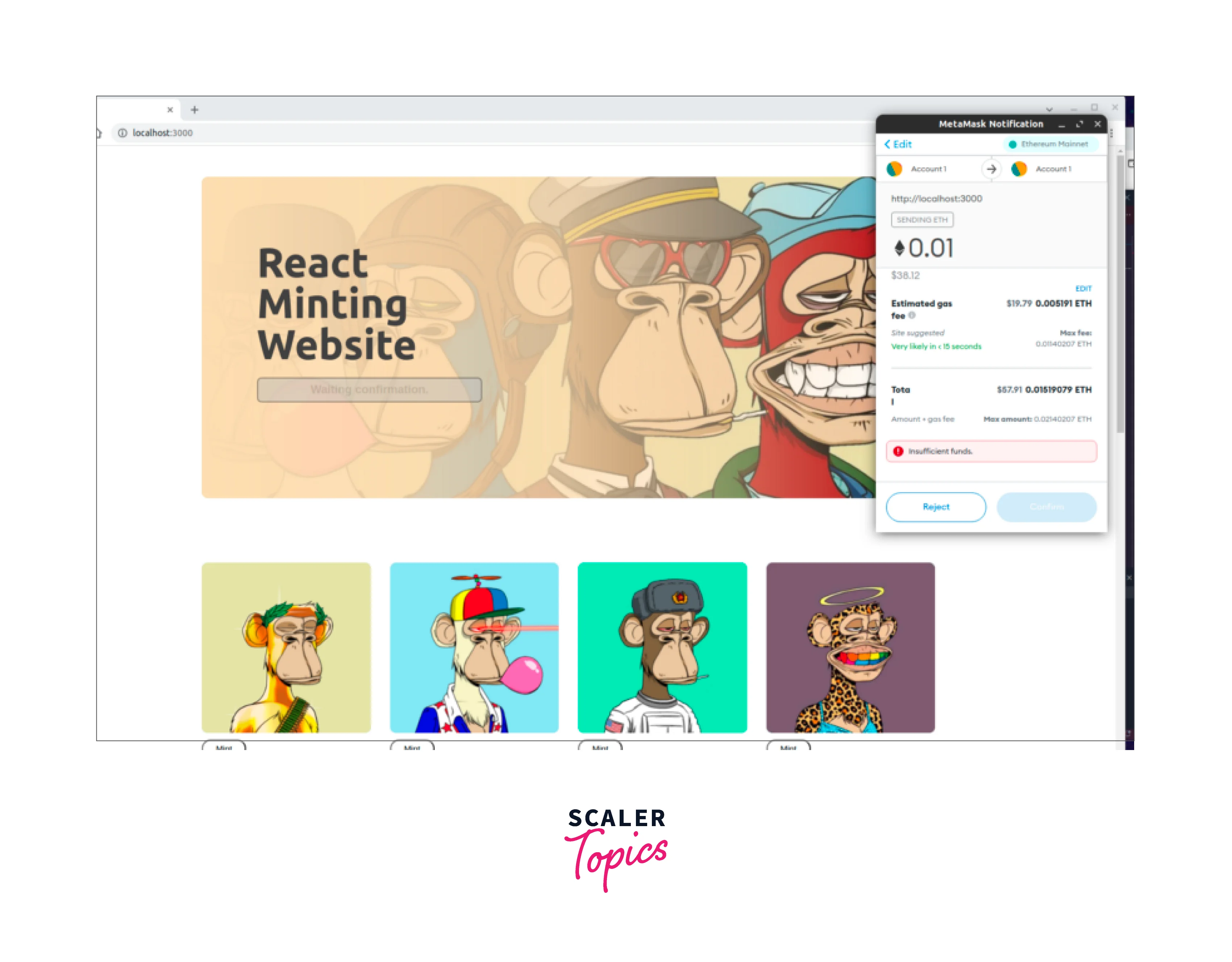 We'll build a straightforward React app. For the sake of this demonstration, we will build a minting website that verifies a user's wallet and enables them to mint an NFT.