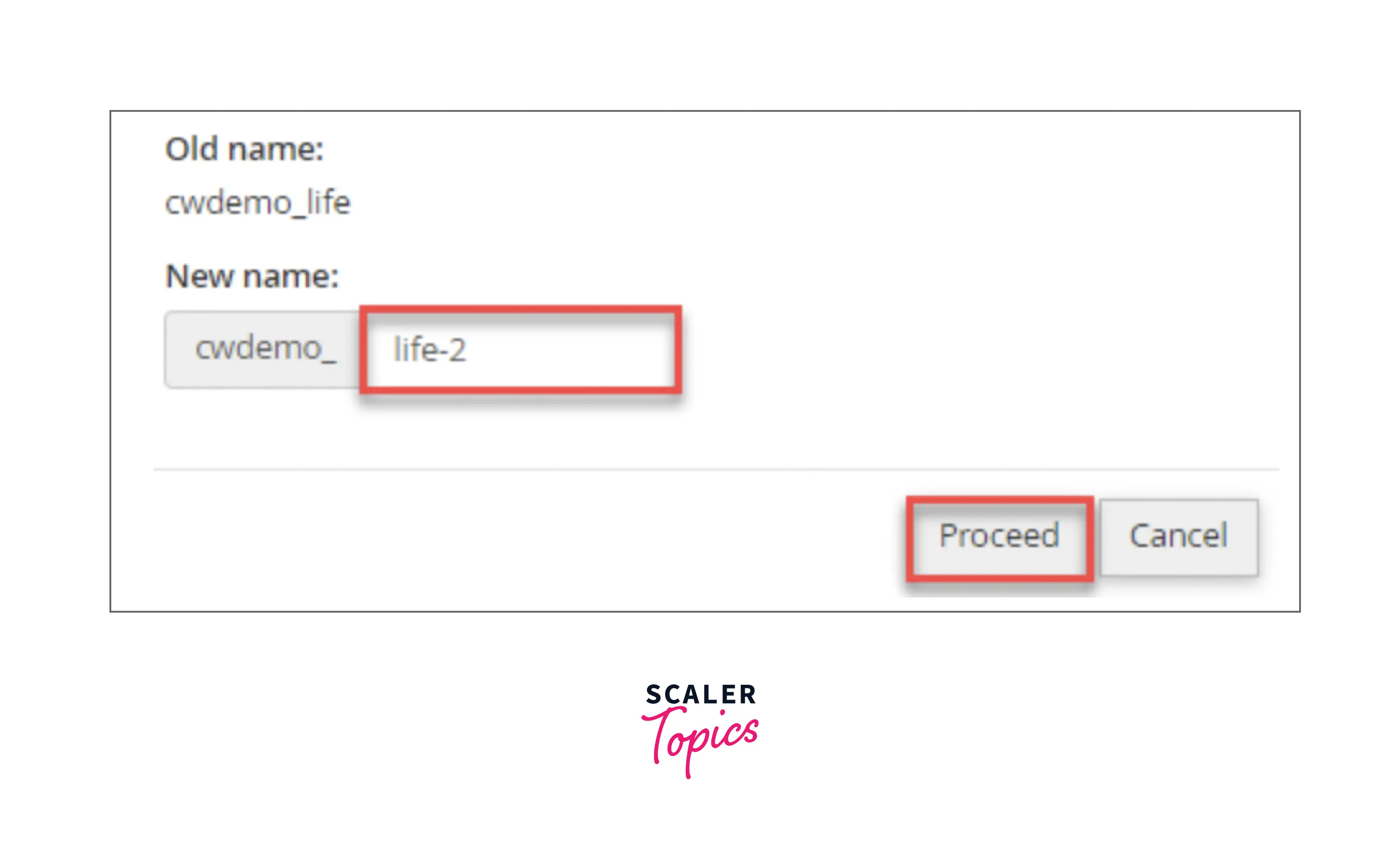 Here, you can enter the desired new database name and save the result by clicking the Proceed button.