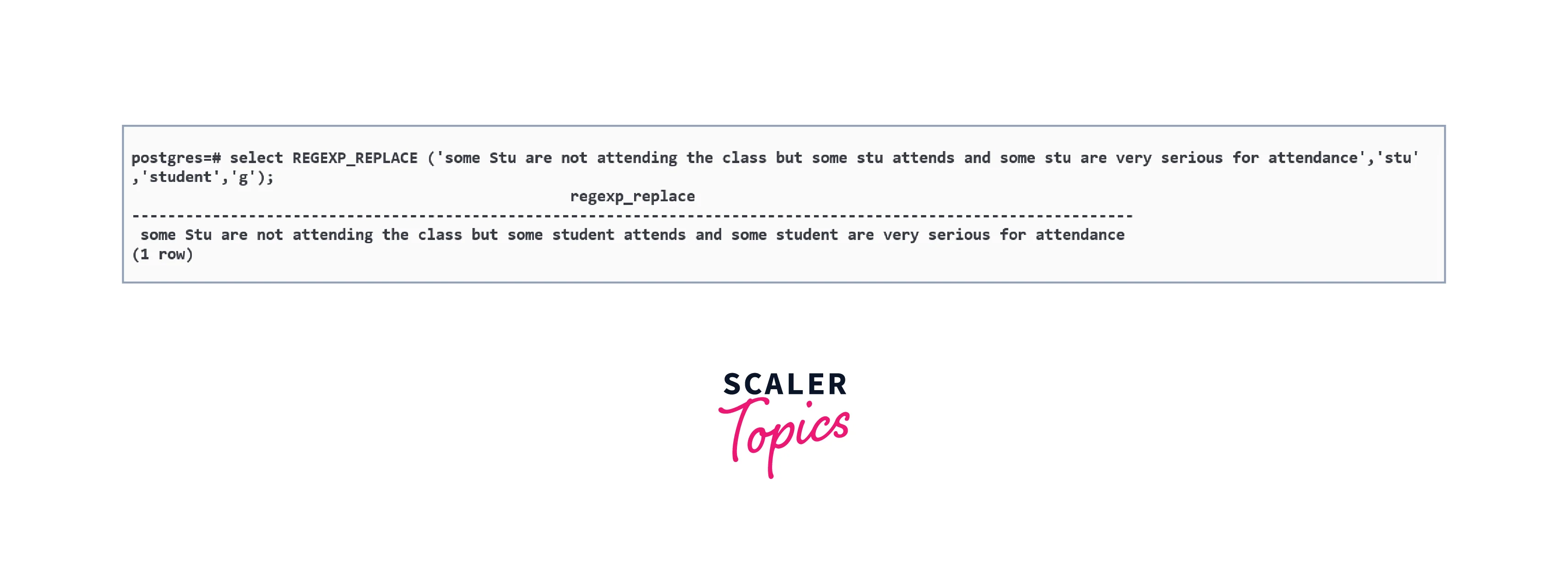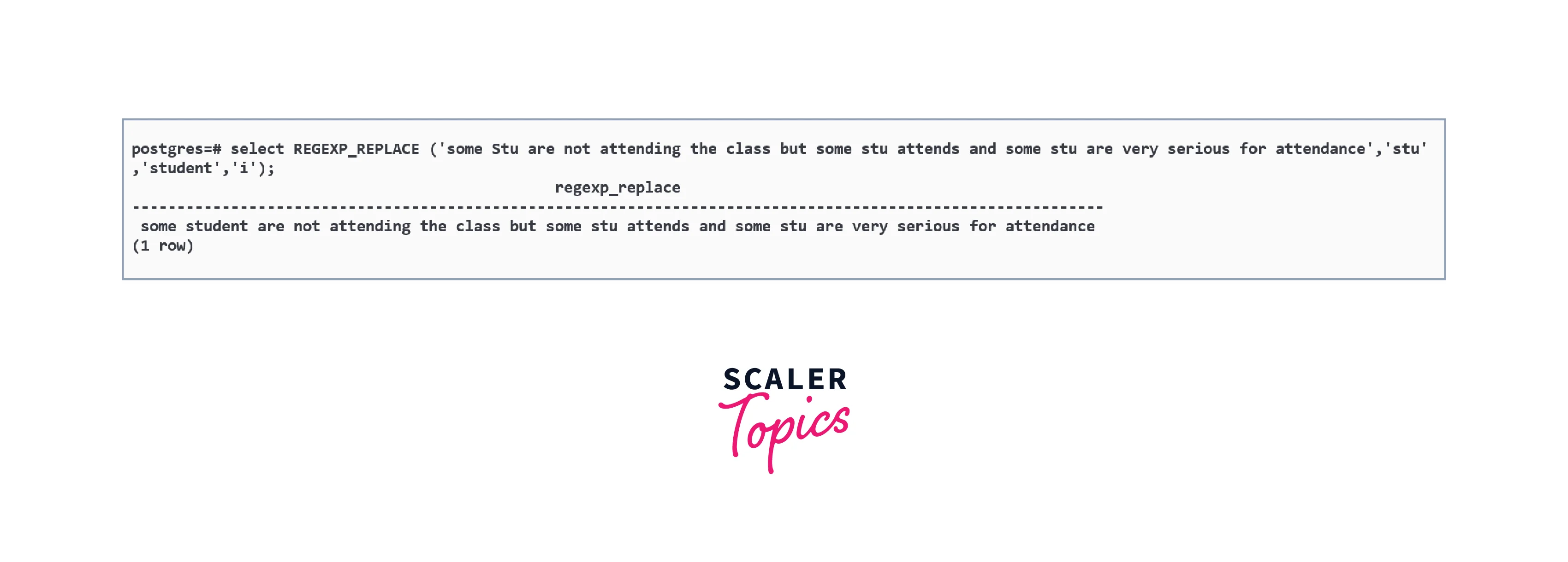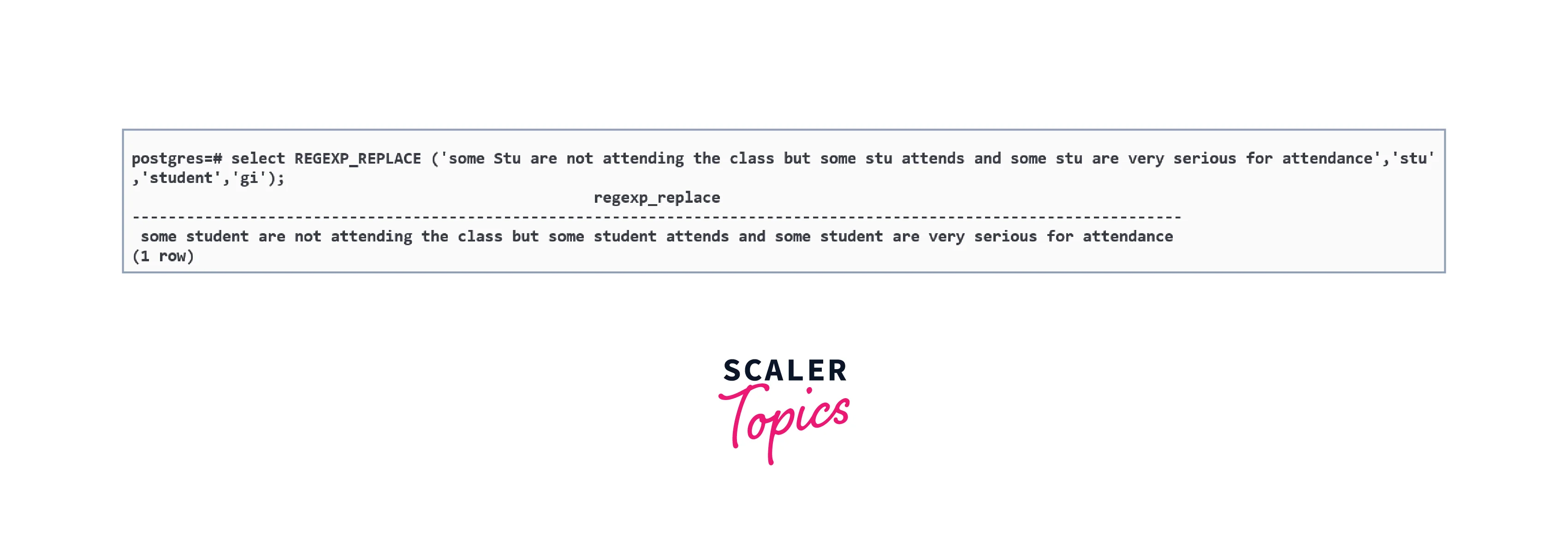 Below is the query in which we have used the i flag to perform case insensitive matching of stu for replacing it with student.