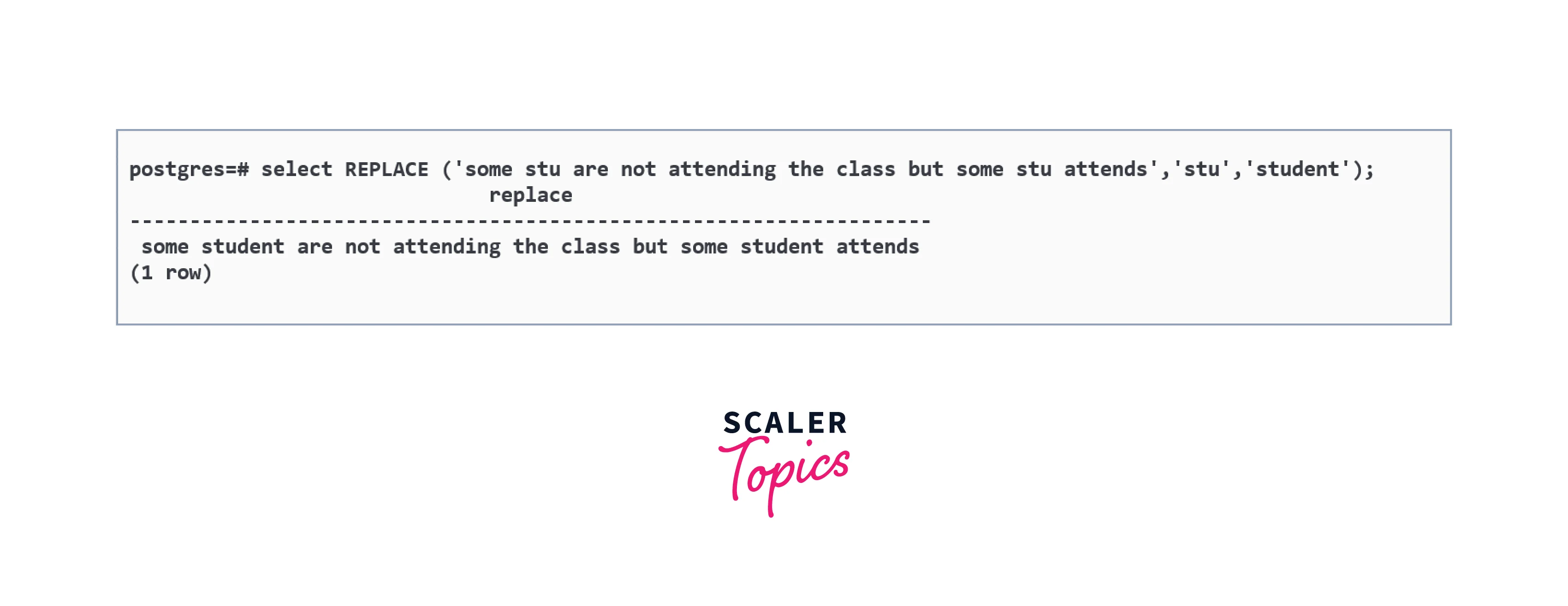 Below is a query which replaces all the occurrences of string stu to the student.