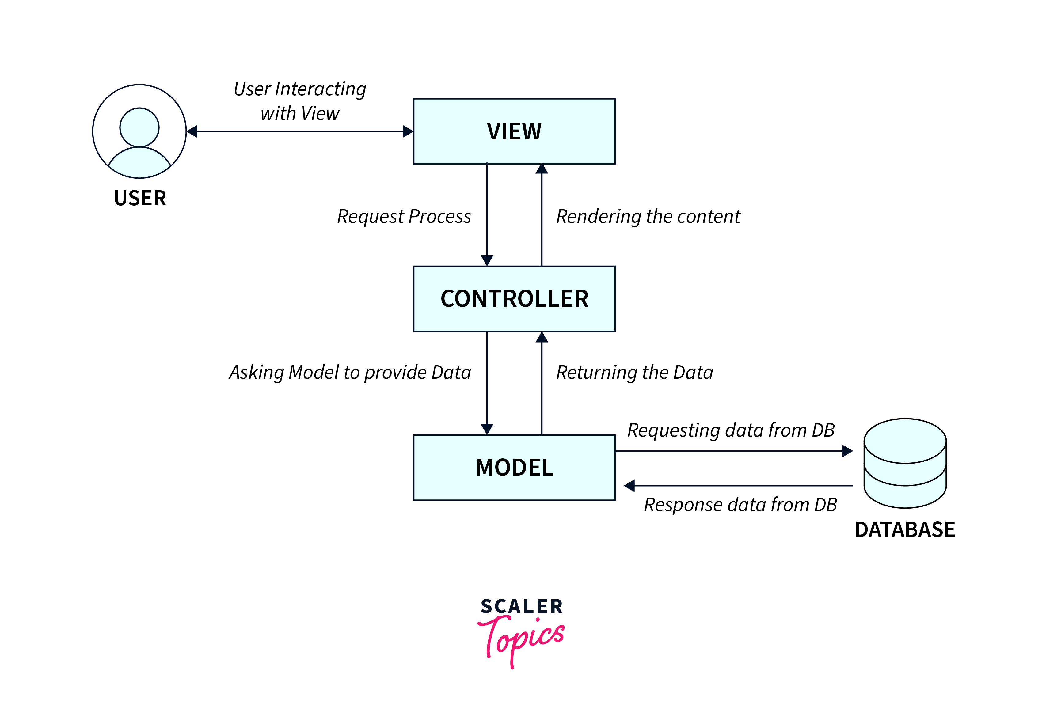 - In the MVC pattern, the Model handles data storage and retrieval, the View handles rendering the user interface, and the Controller handles user input and application logic.