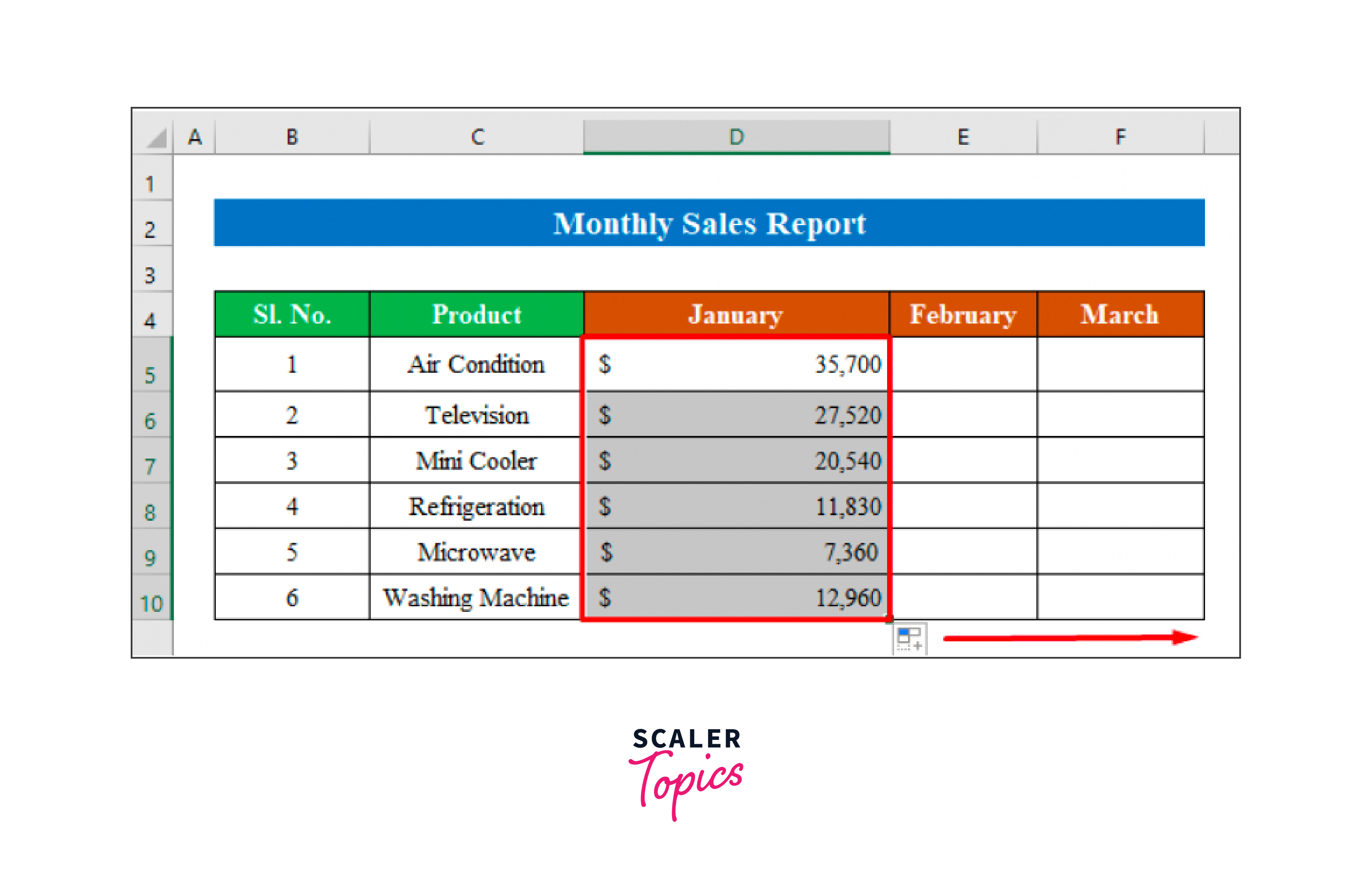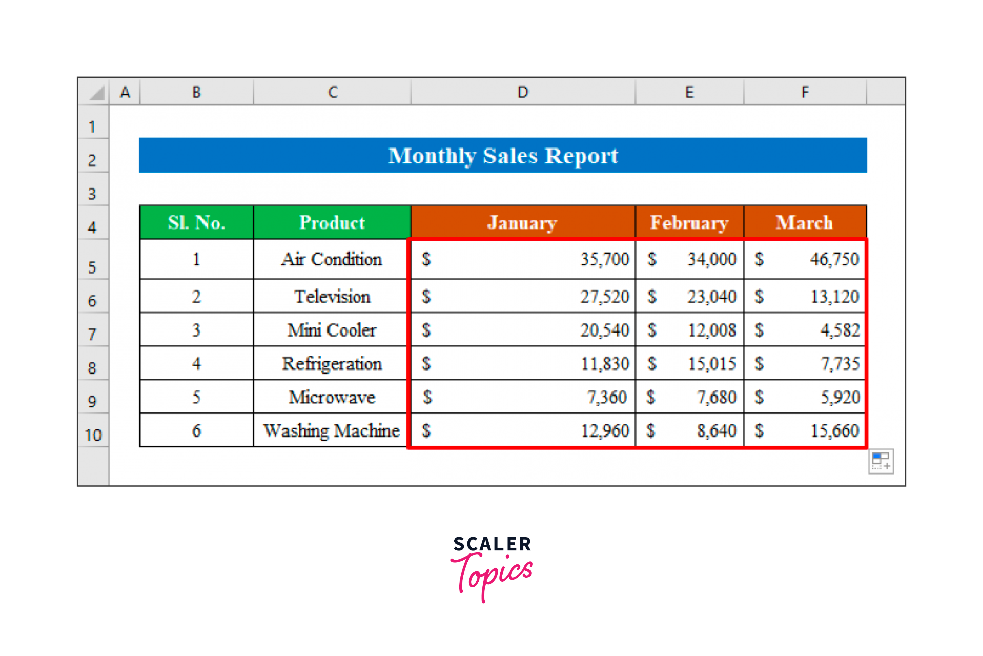 Every month, we used a fresh worksheet to determine the sales report in Excel for each item.