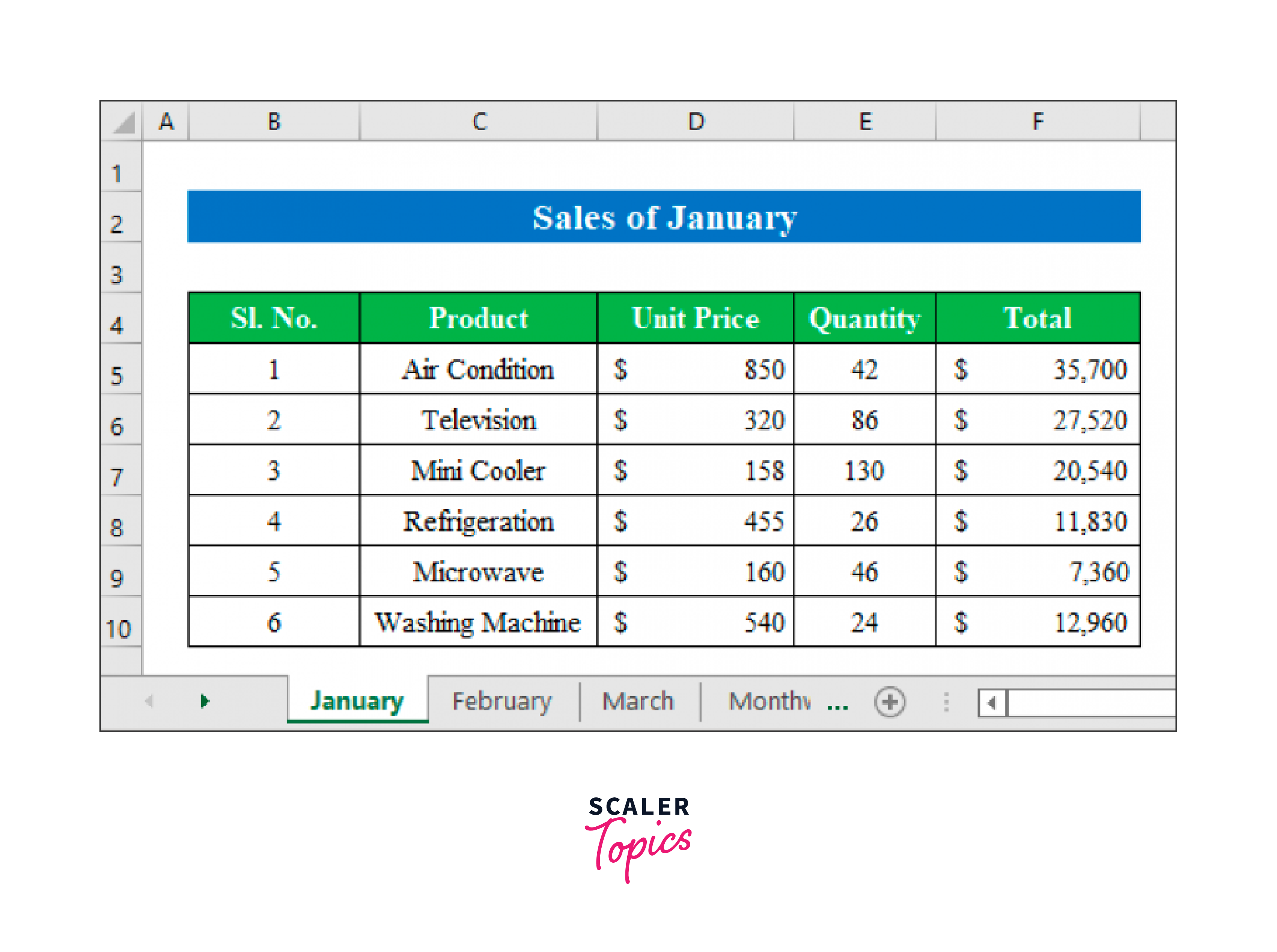 - The sales for January would be the addition of all the product sold in that month.
