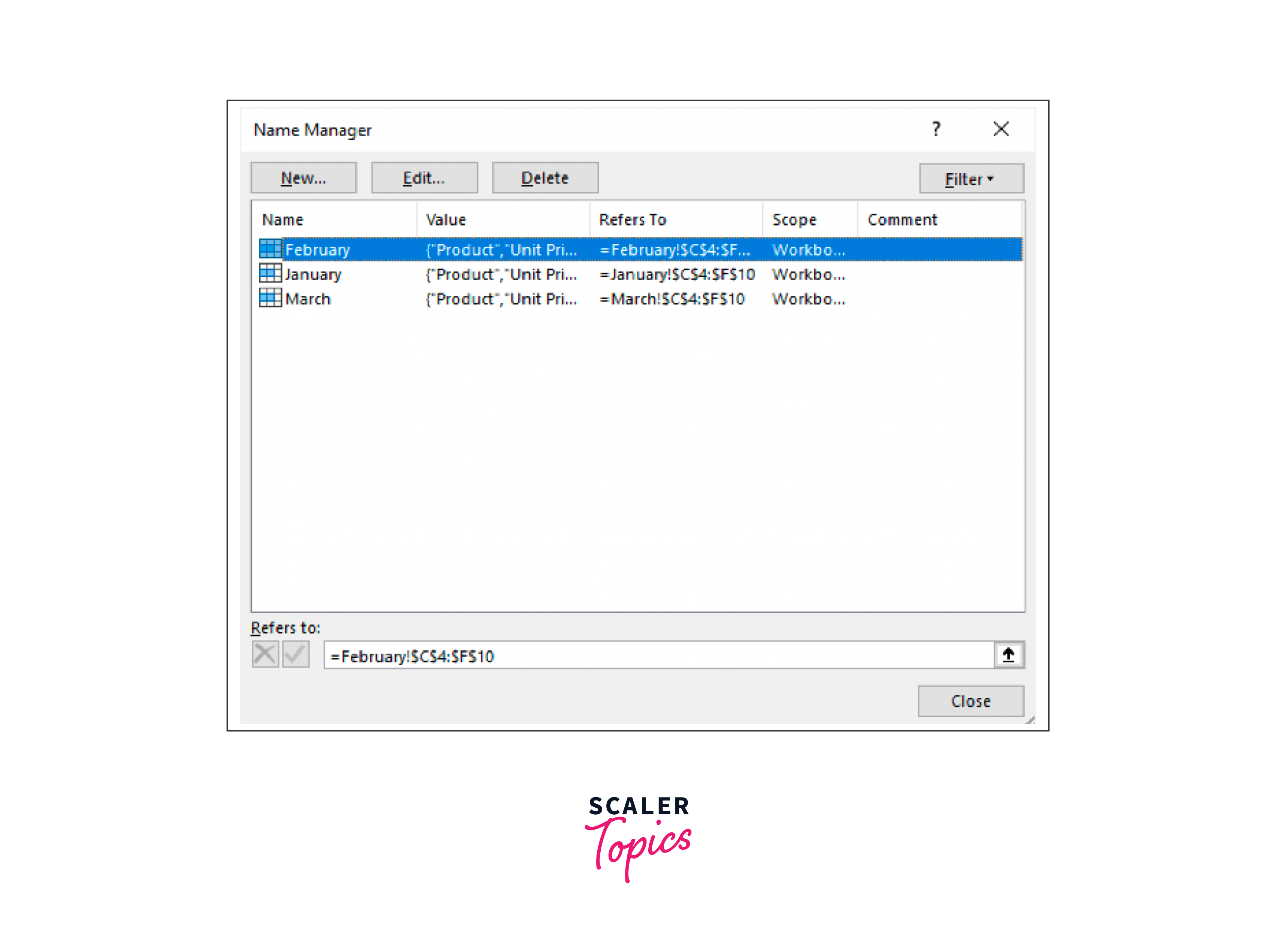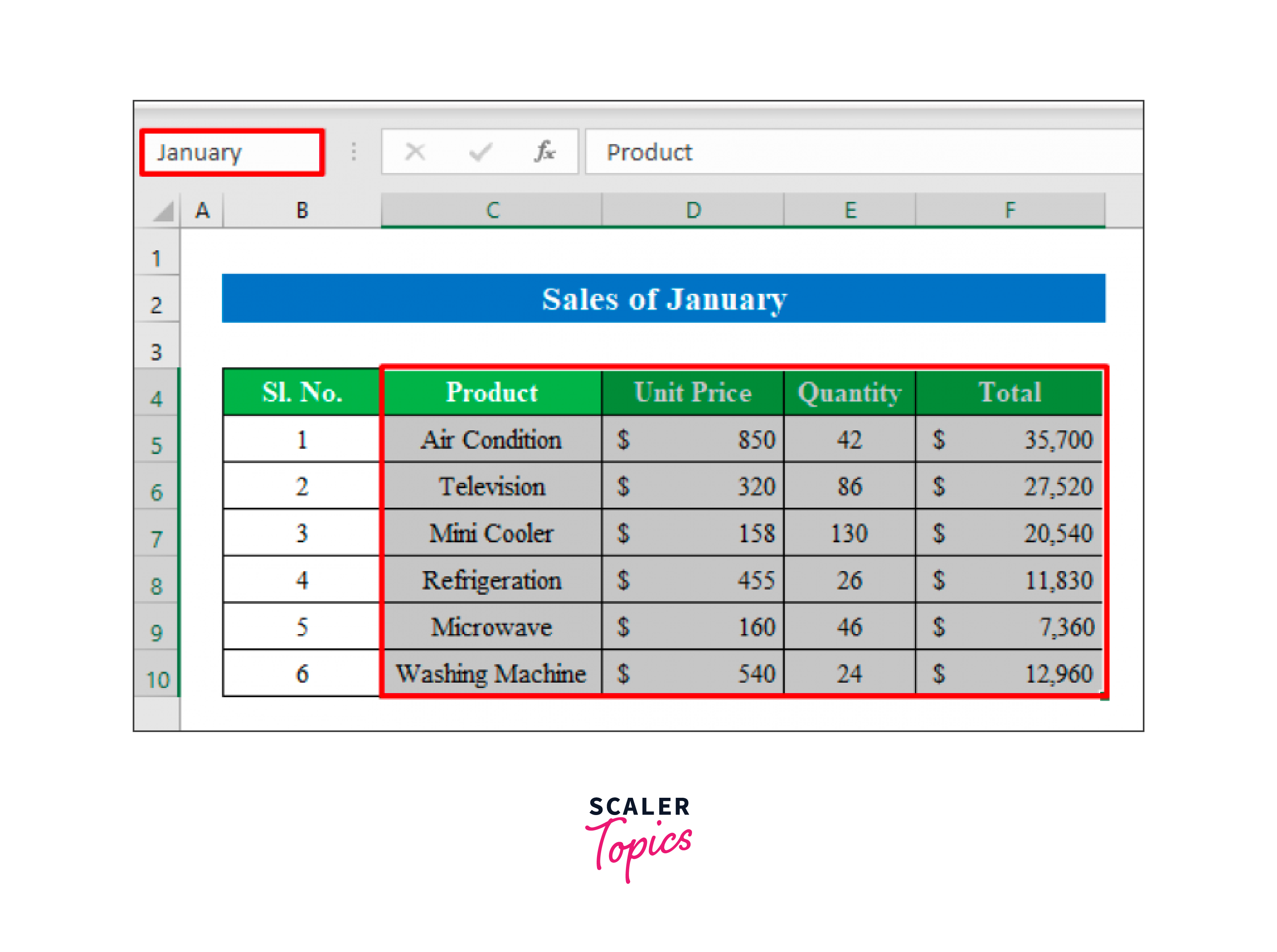 As we choose the data range from "Sales of January," type "January" in the name box while the data is being selected. To continue, use the Enter key.