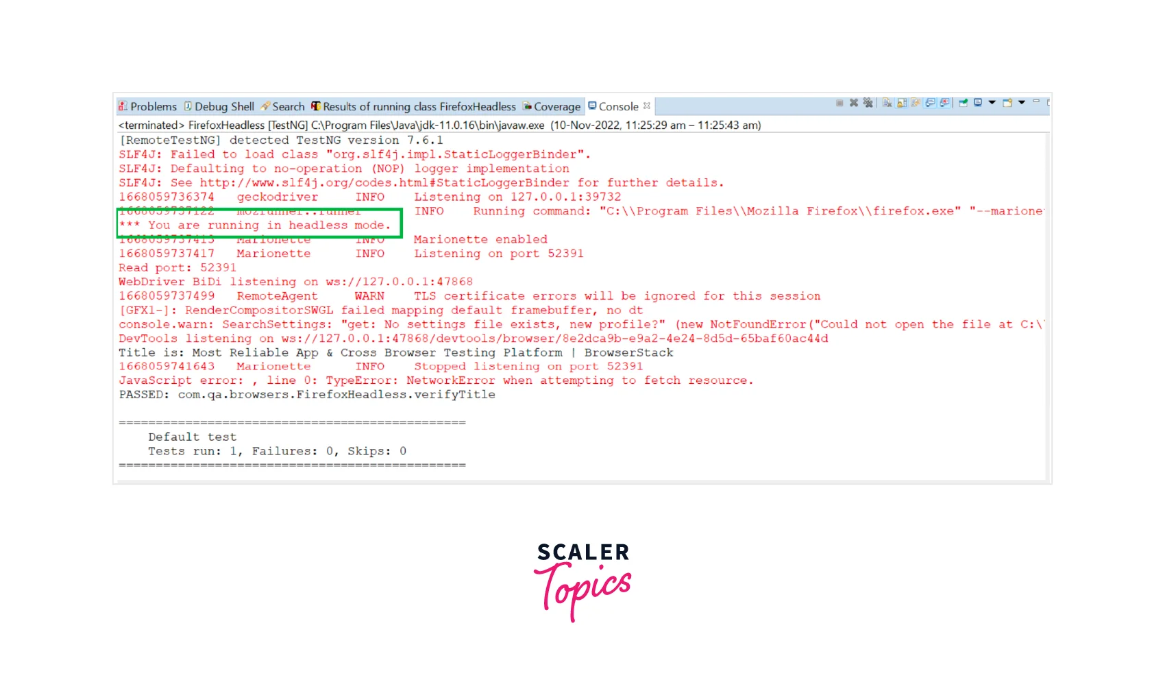 Set the headless flag in option.setCapability() to true as shown in the code above - Step 5: