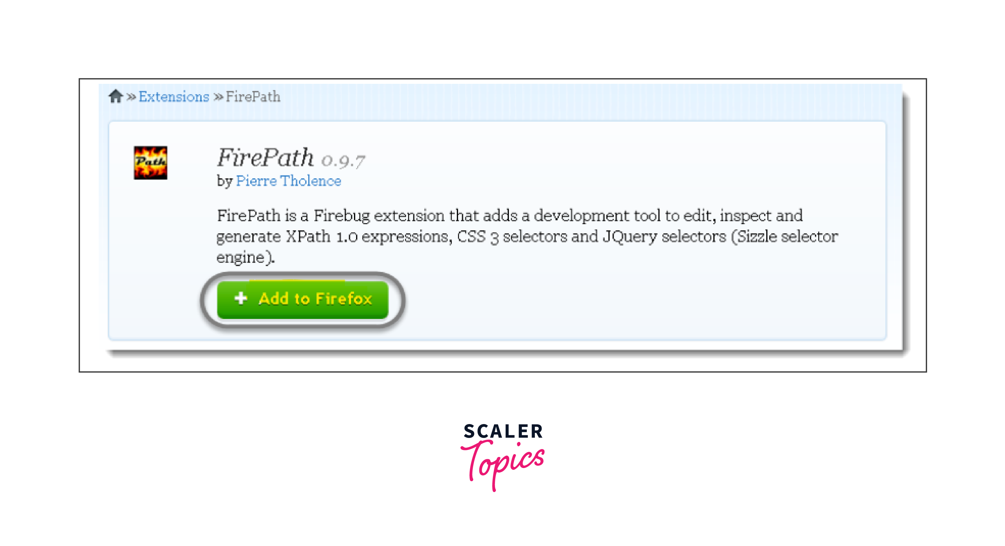 Once Firebug is installed, you can proceed to install FirePath. Visit the FirePath download page and click on the Add to Firefox button to initiate the installation process.