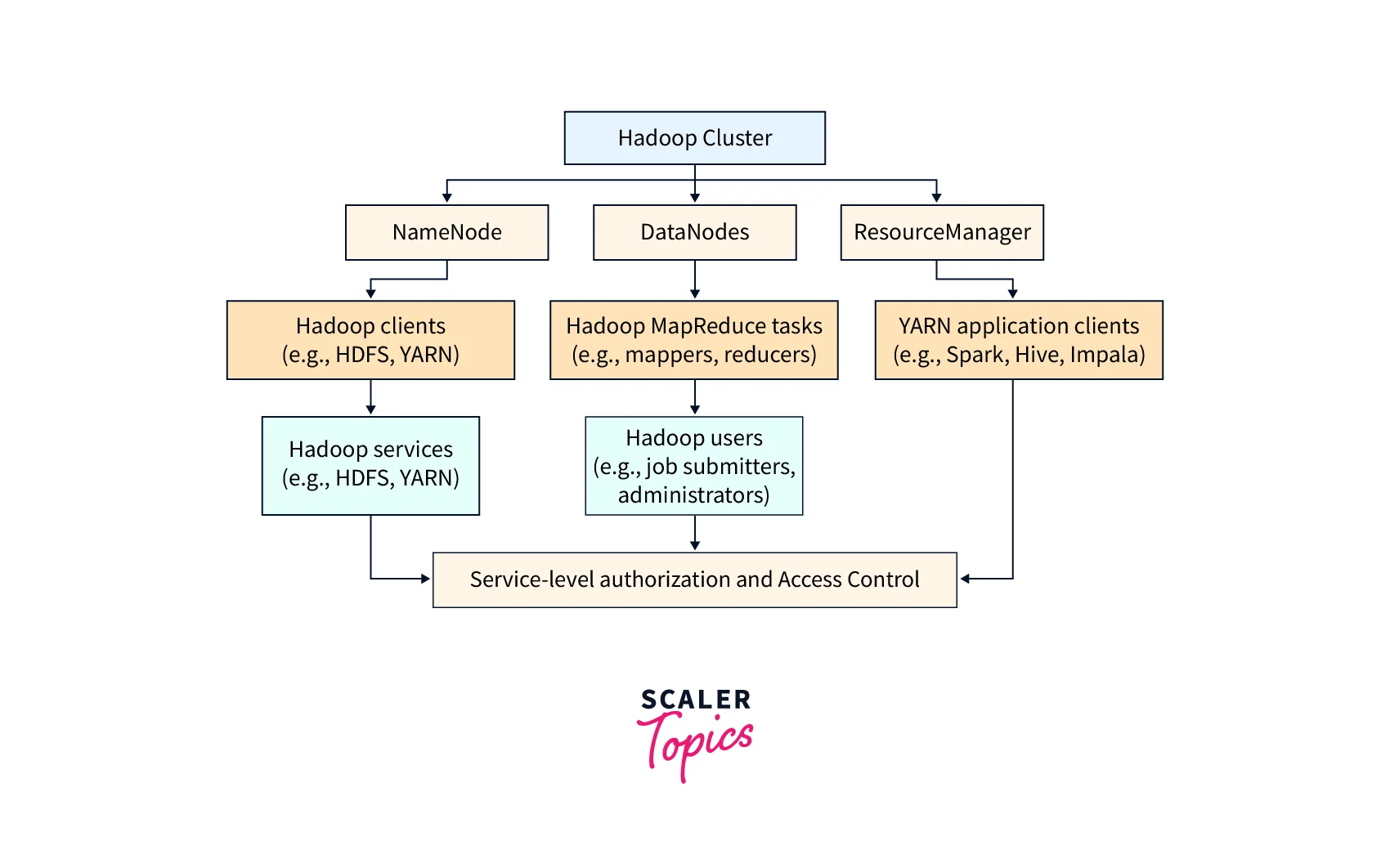 YARN (Yet Another Resource Negotiator): The Hadoop resource manager controls resources like CPU, memory, and disc across different applications running in a cluster. YARN must be configured to enable SLA with appropriate access controls and security settings, such as yarn.acl.enable and yarn.admin.acl.