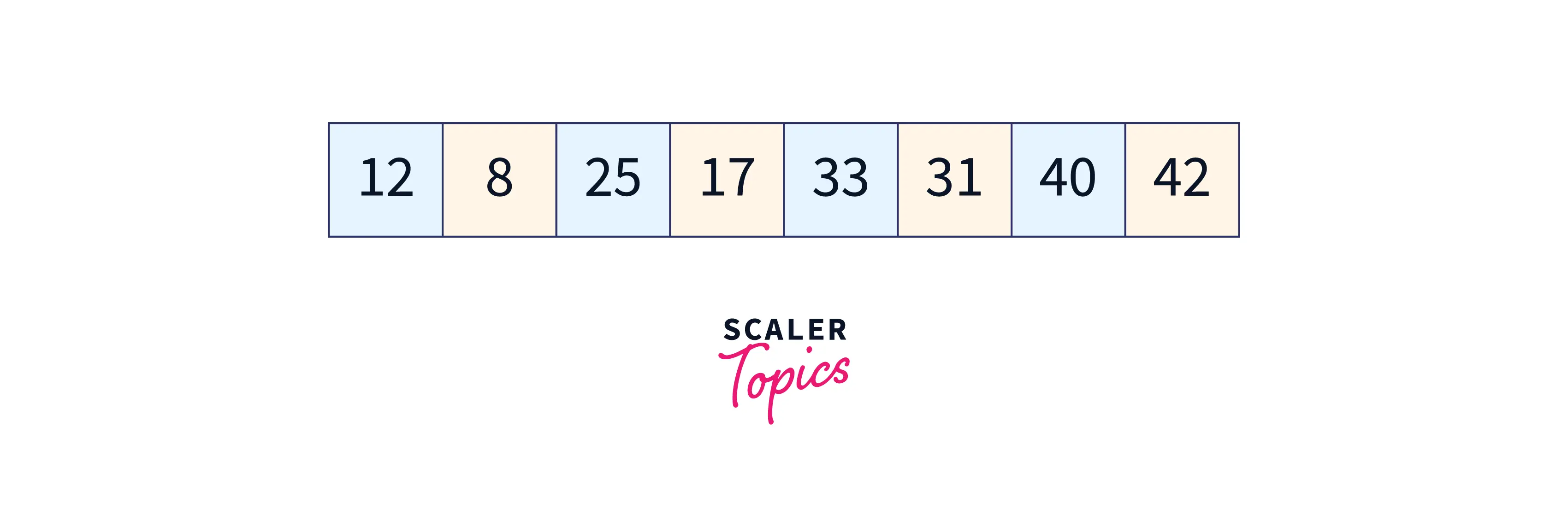 The sub-lists after interval 4 are, [31, 17], [8, 42], [33, 12], [40, 25] The next step after this is to compare elements of the sub-list and swap if required. After this step, the array would look something like this: