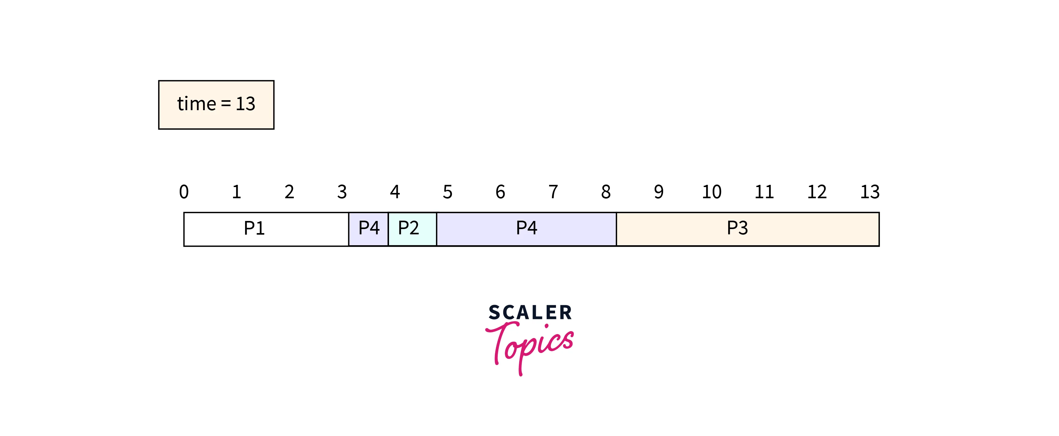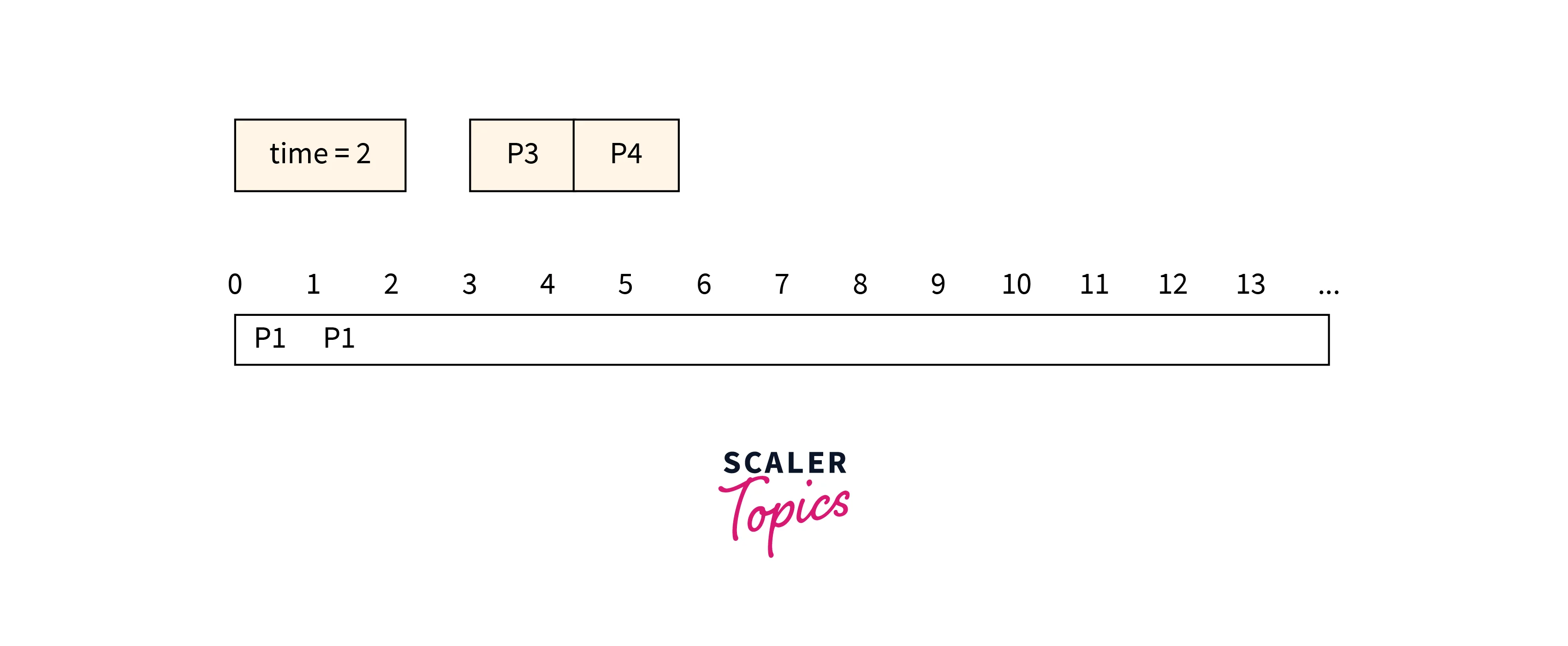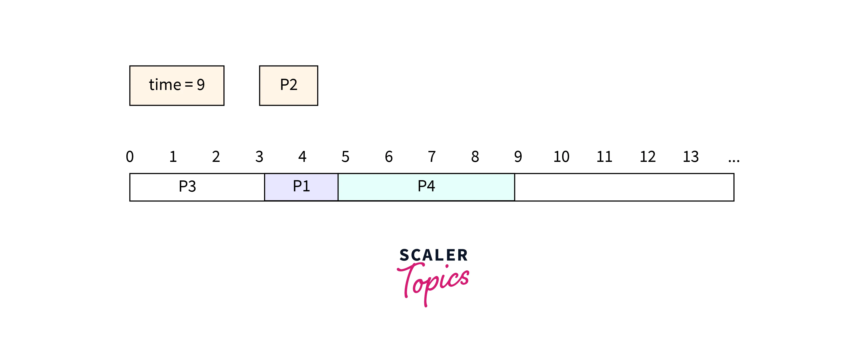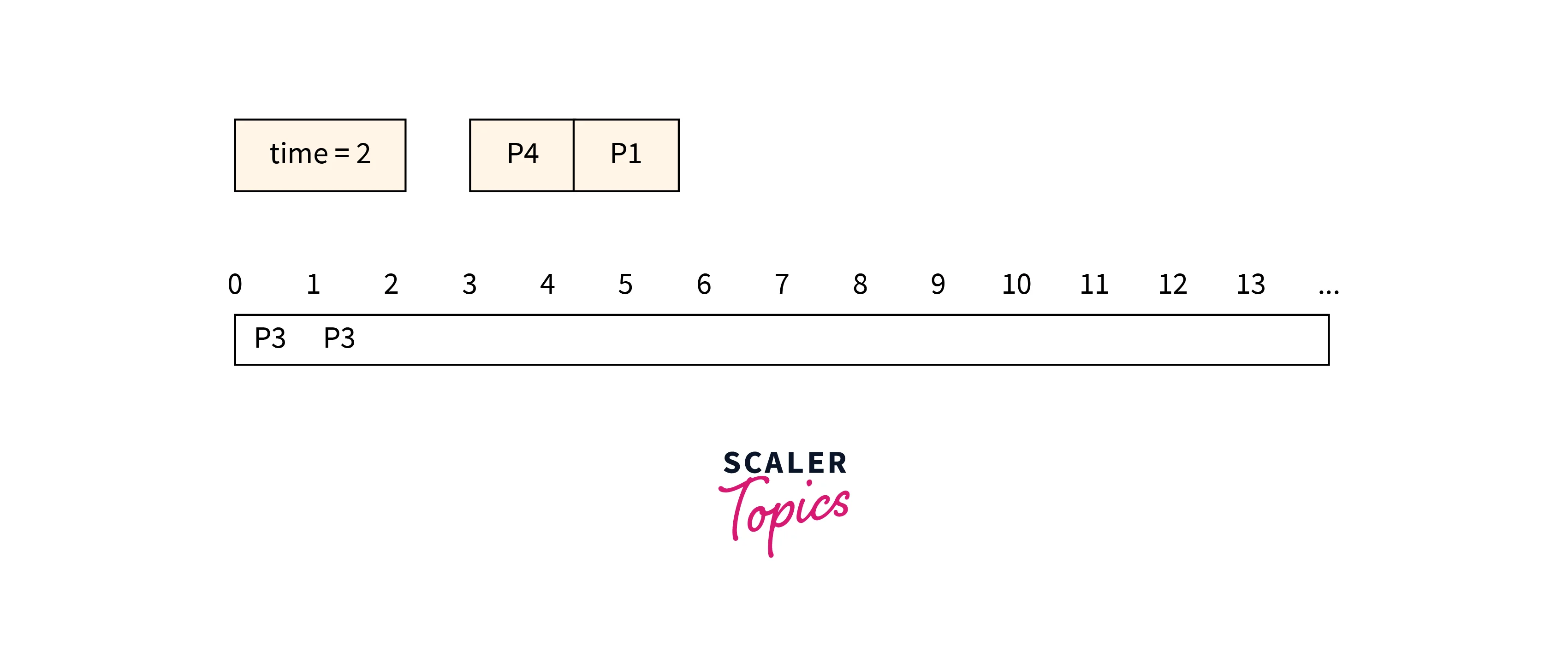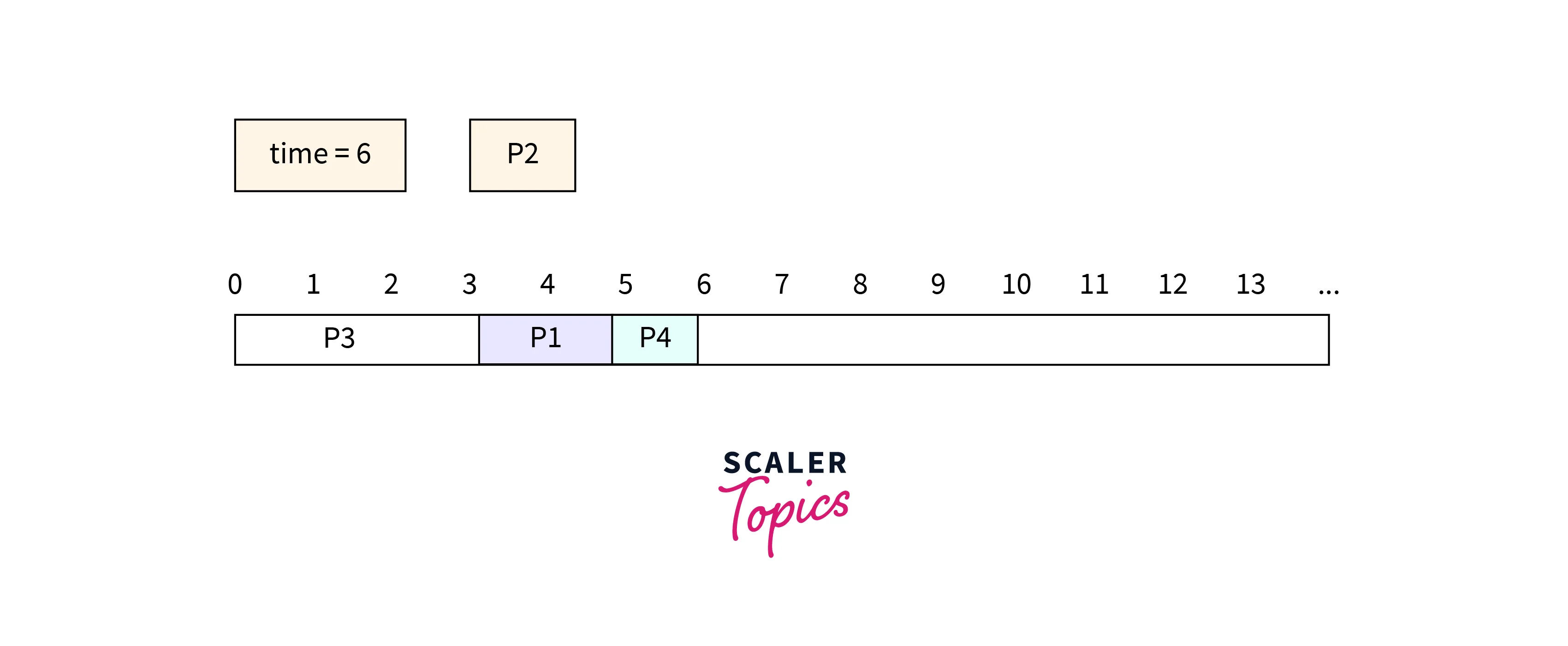 Step 6: At , process completes its execution, and starts its execution in the CPU.
