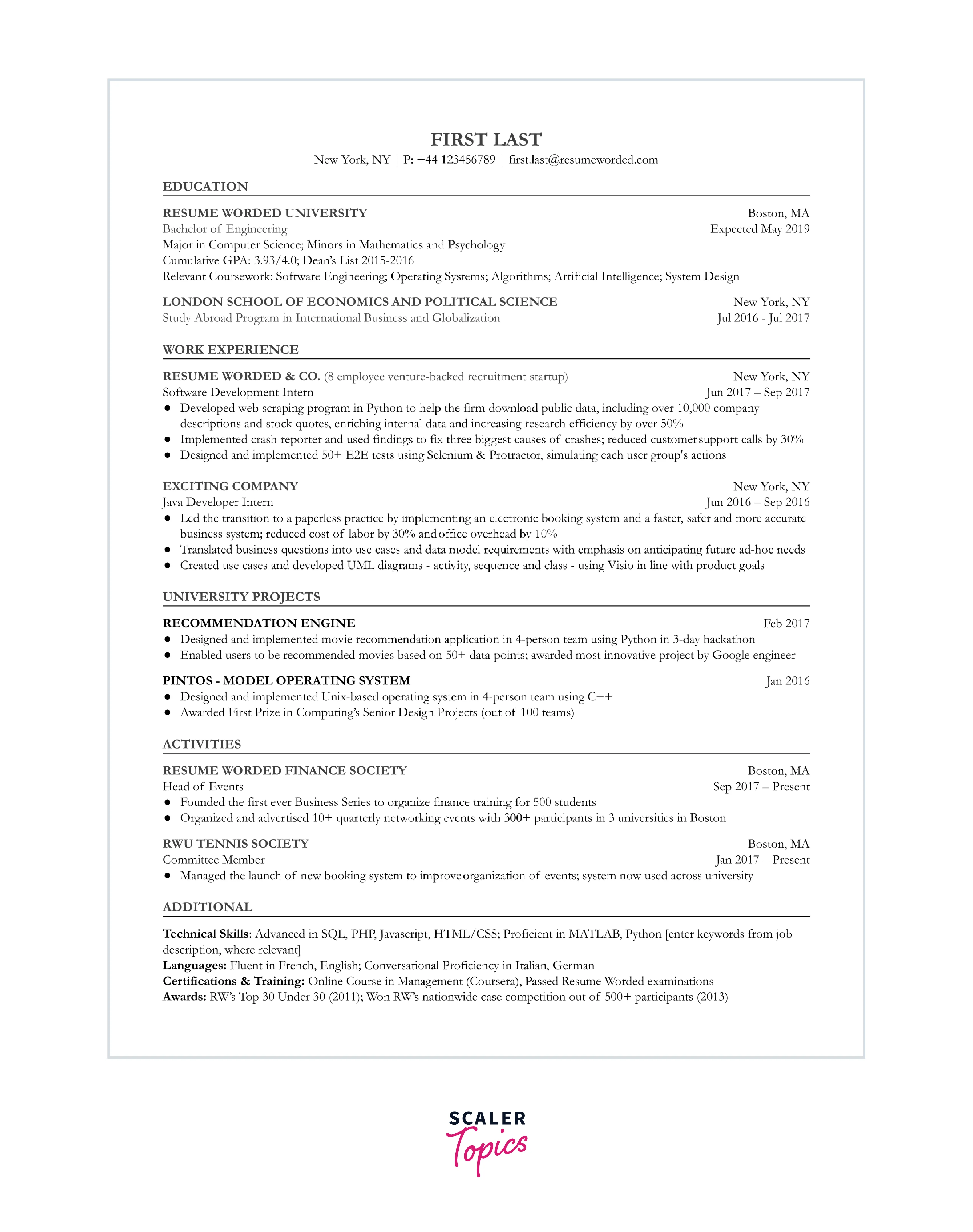 Your resume should be no longer than two pages. Keep it concise and to the point, focusing on your most relevant skills and experiences. - Use headings and subheadings: