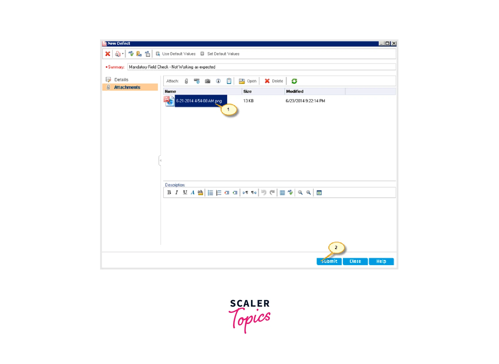 Step - 4: Once the attachment has been uploaded. Click on the submit button to post the defect. It will generate a defect ID.