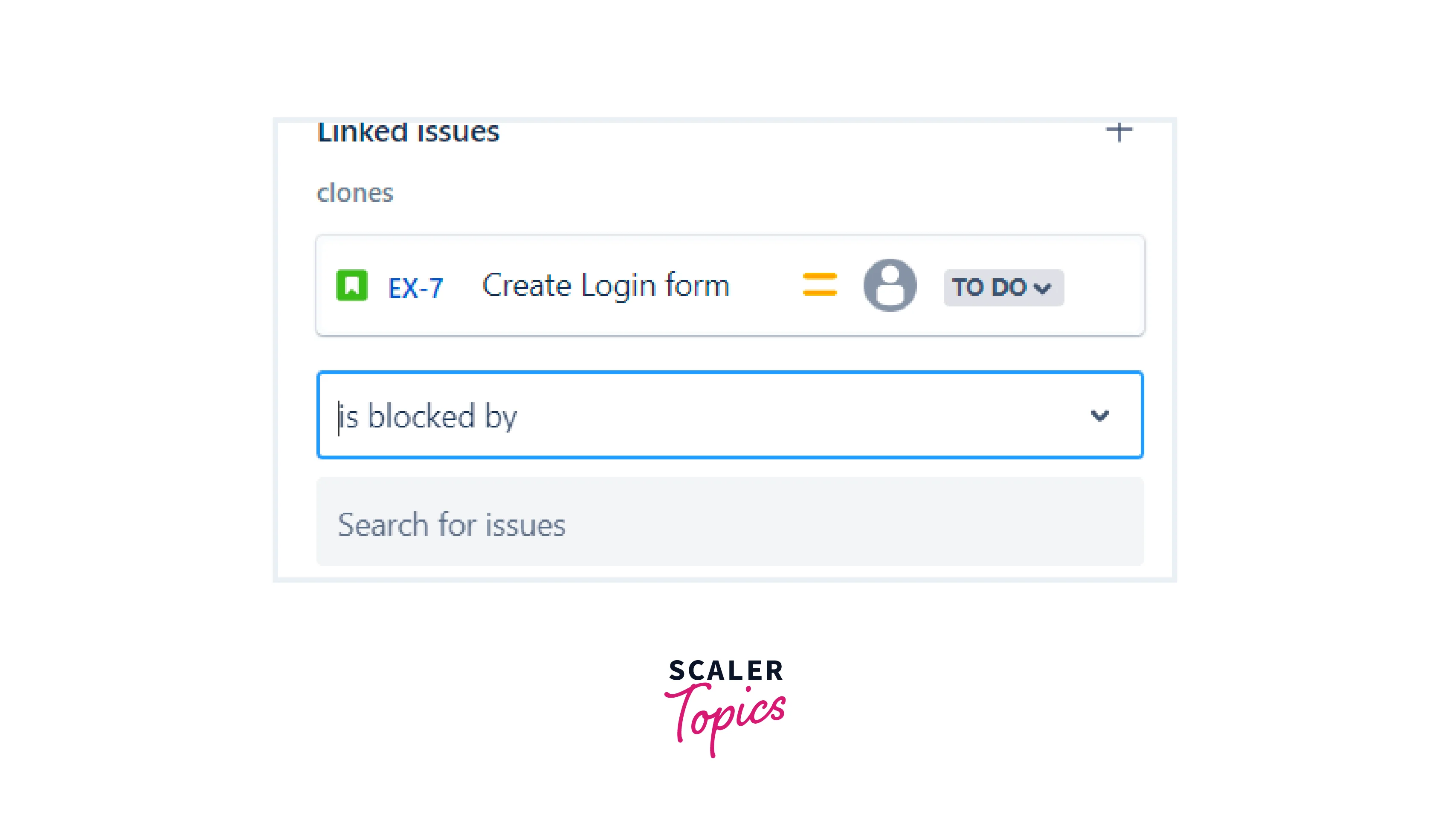 - Select the type whether the new issue is blocked by/duplicate/clone of the linked issue.