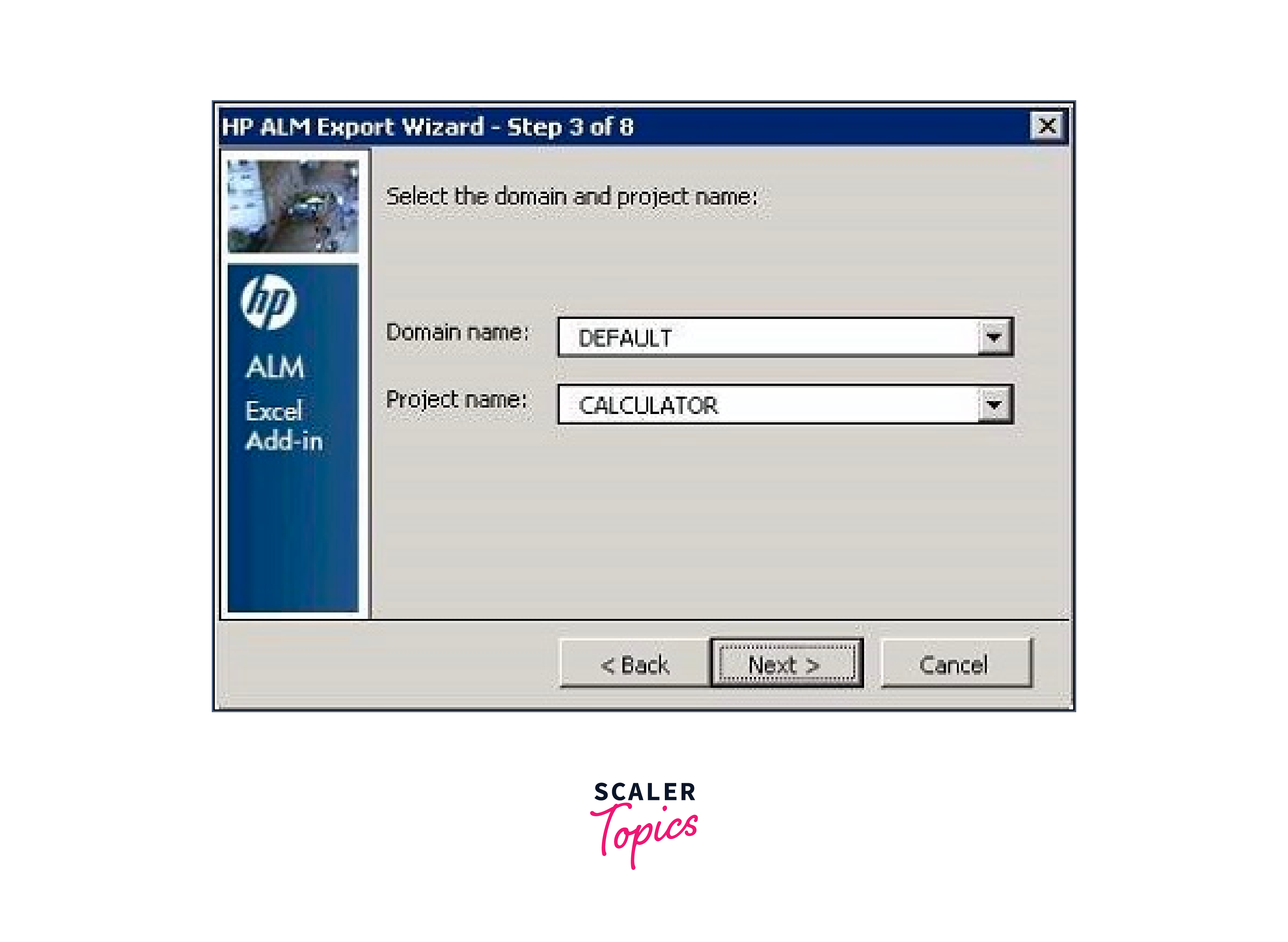 The ALM Export Wizard opens and enters the HP ALM Server URL.
