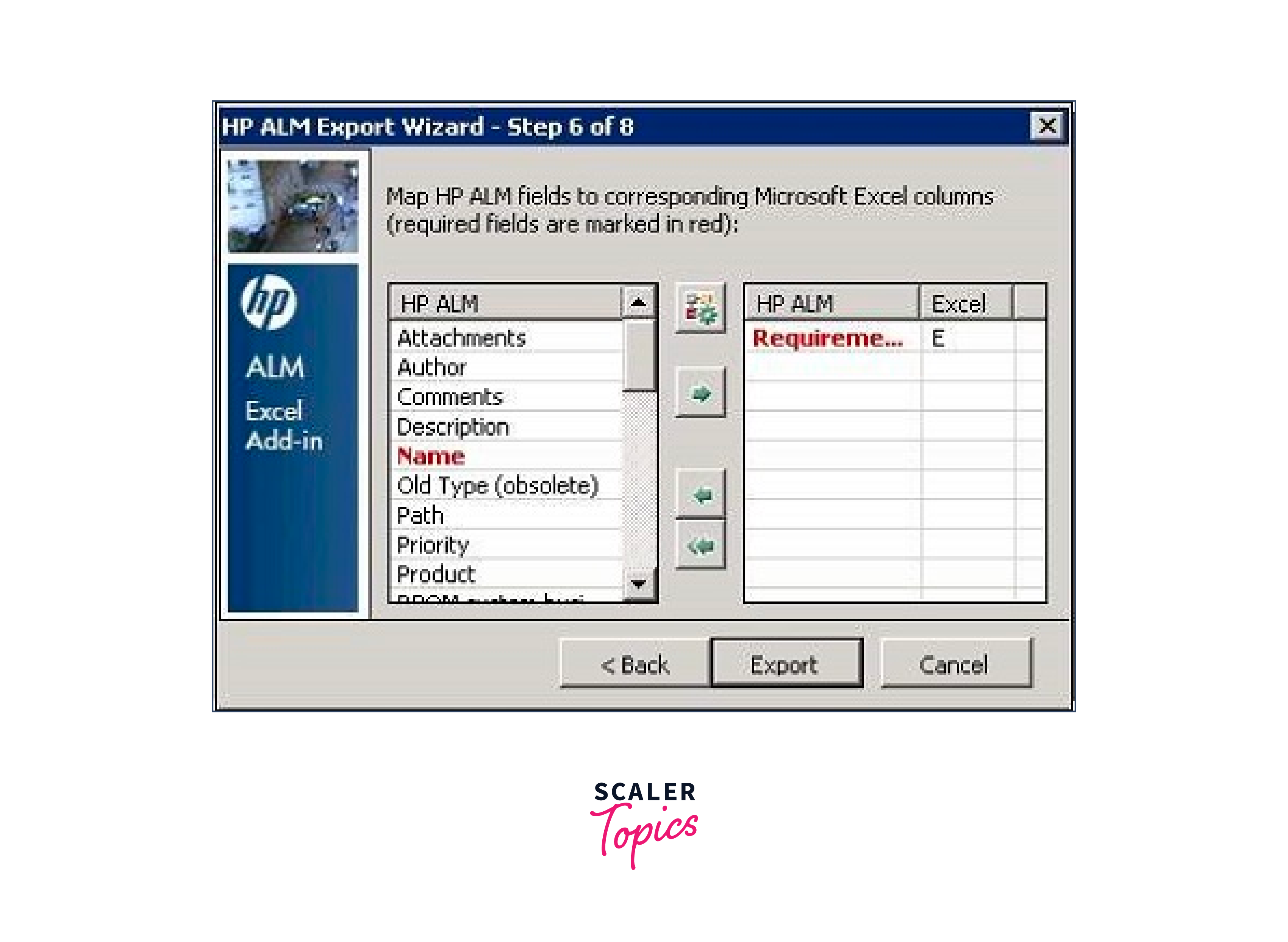 Map all the required Excel columns against the appropriate HP ALM fields. Click ‘Export’.