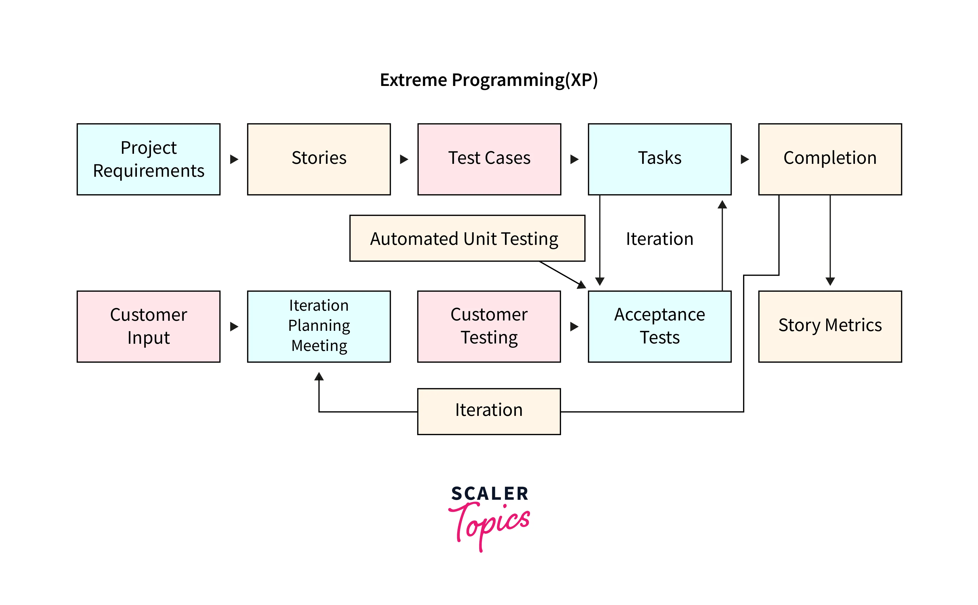 Extreme Programming(XP): Extreme Programming, as the name suggests, has frequent milestones in product delivery where after every few weeks, a version of the product needs to be released to the client. It also is the best framework when clients' requirements keep on changing. , For example,, some clients ask for a product prototype to be delivered with the basic functionalities. Then after a few weeks, a meeting is called where the model is detailed.