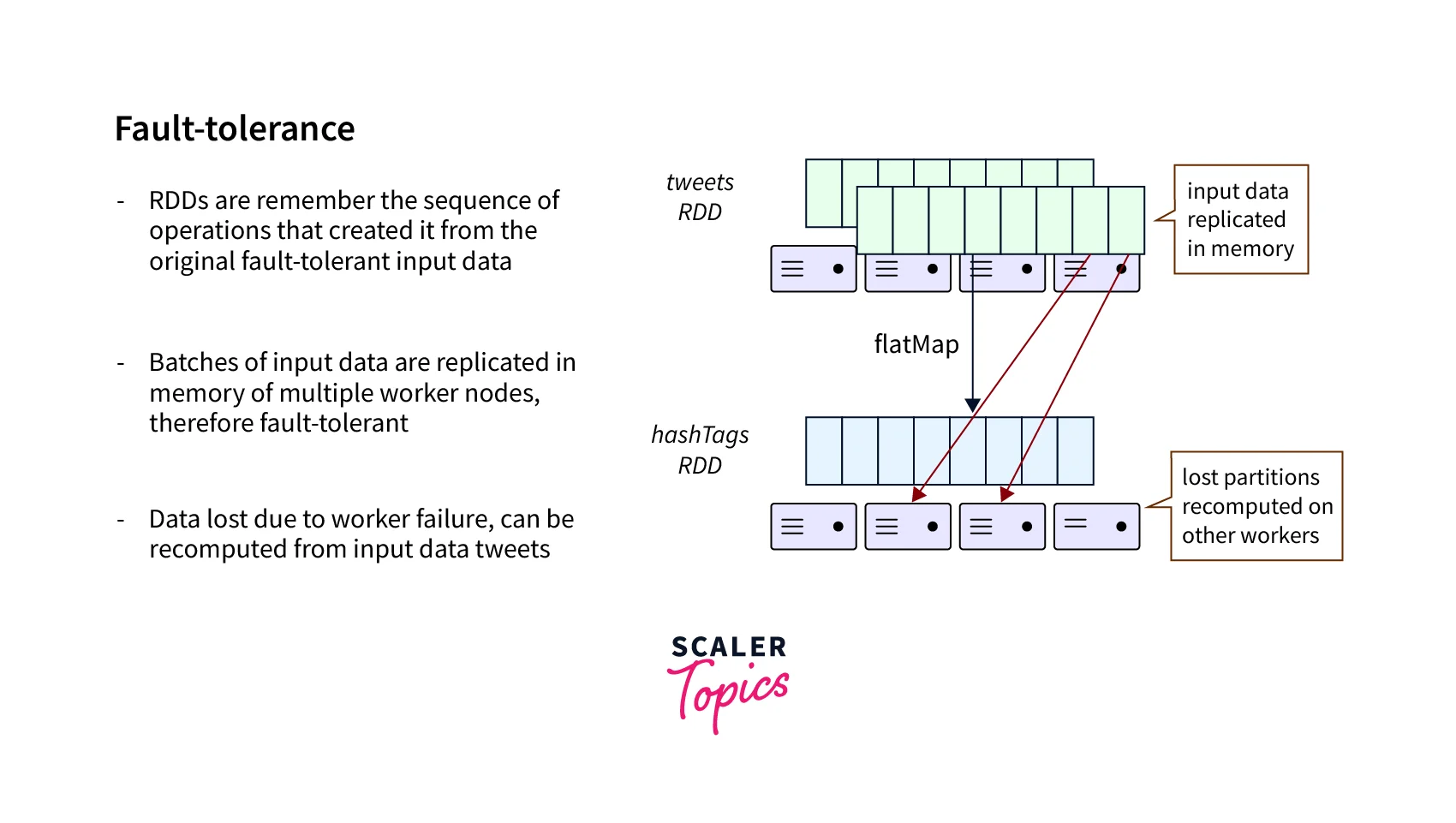 | Fault Tolerance | Full fault tolerance through RDD lineage | Fault tolerance through checkpointing |