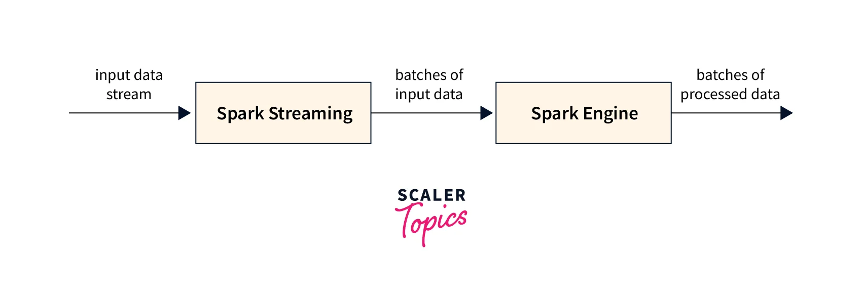 - Spark Streaming employs a micro-batch processing approach, which means data is processed in small, discrete batches rather than as a continuous stream. This allows Spark to process massive amounts of data in real-time without overwhelming the machine.