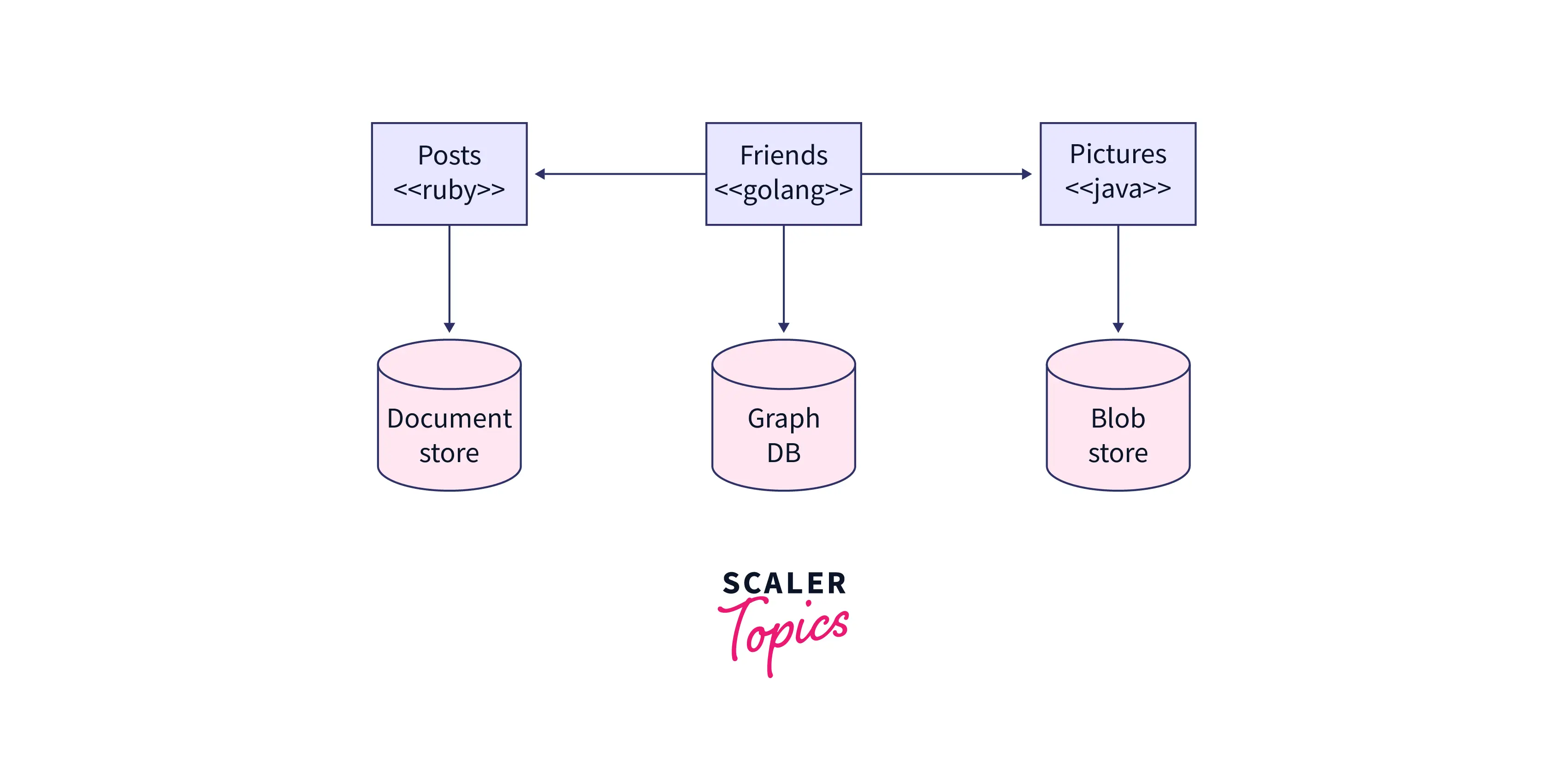 Each service should own its state. In other words, a service should not share a database. If one service wants to access data owned by another, it should ask for it. This principle opens the door for polyglot persistence; for example, one service can use RDBMS for the store while another can use a document database.