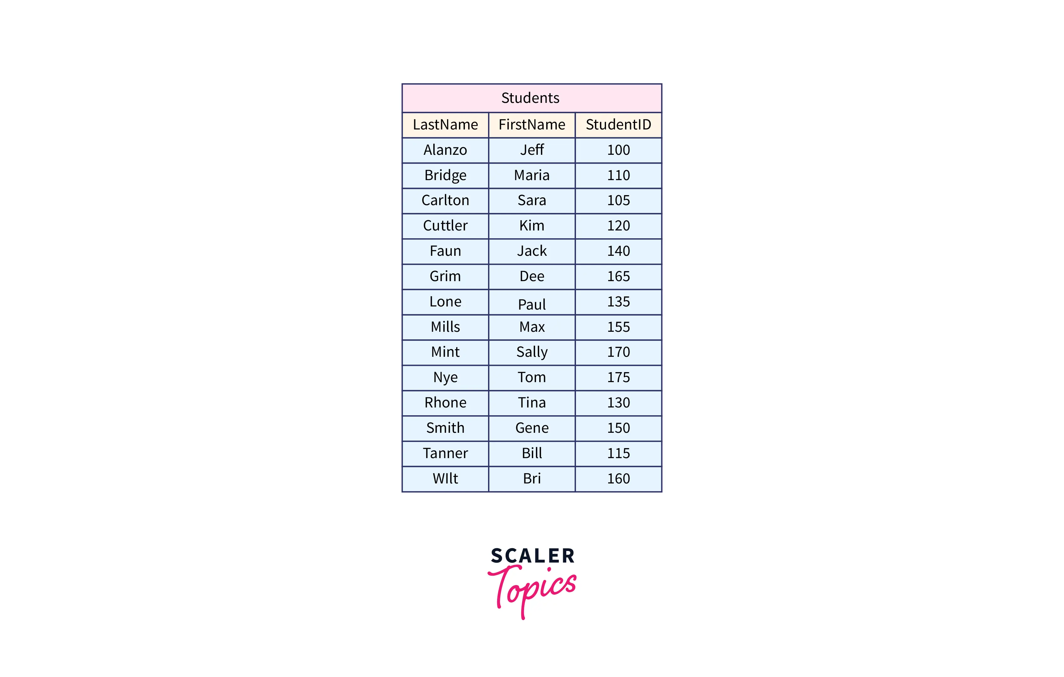 Note: The data is ordered by LastName in the SELECT statement, not by the order in which the rows were added.