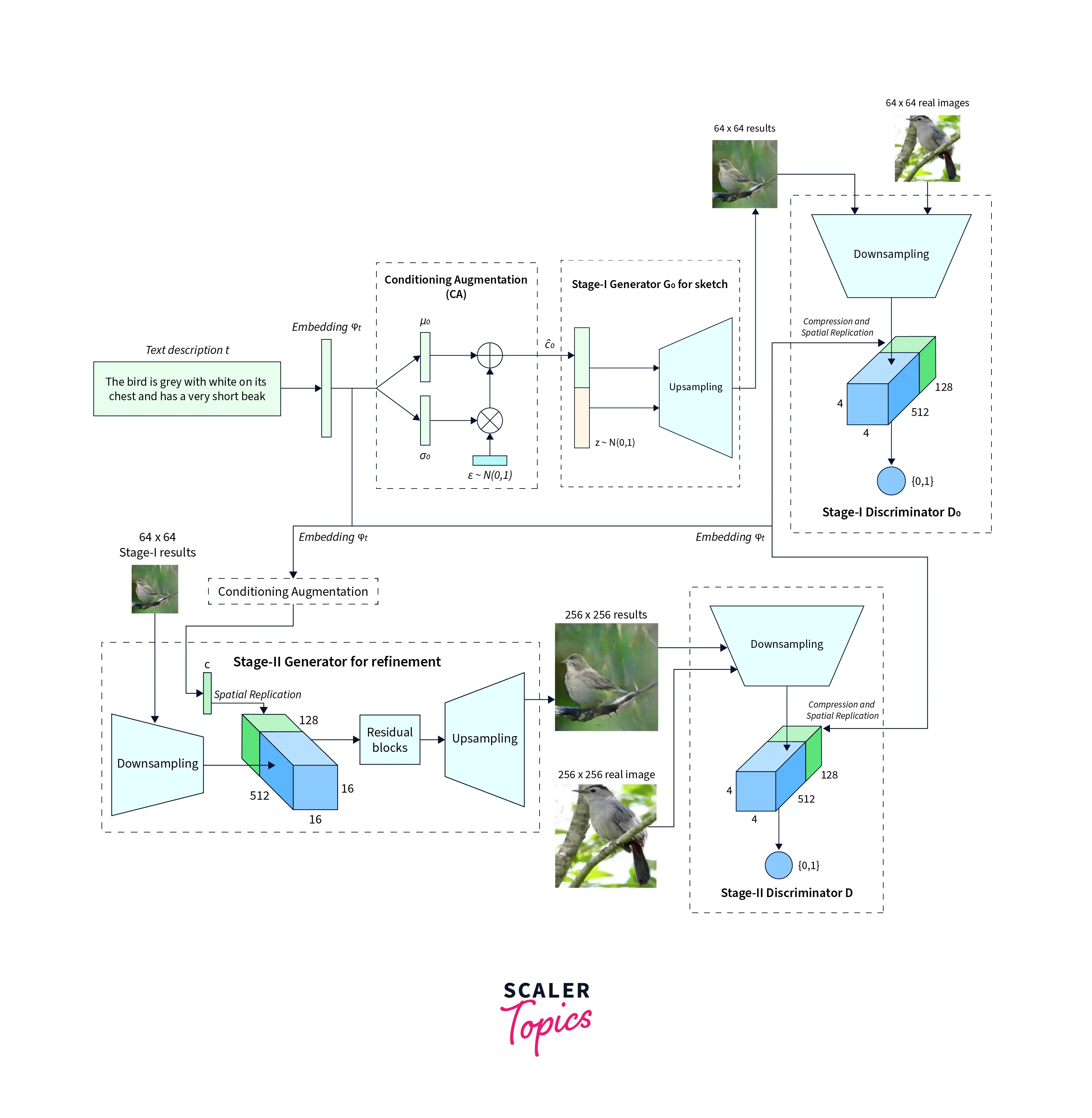 Generating novel photorealistic images is a huge part of the computer vision process in many fields, such as photo editing, design, and other graphics-related work. Many attempts to generate high-resolution images have been made in the past, and StackGAN is one of the major ones. Instead of performing the generation task in one go as most existing architectures do, a StackGAN uses two separate GANs. The authors of the StackGAN made this architectural choice to replicate how a human artist paints a picture. They start with a rough sketch and a color blackout, then move on to refining the details of the sketch. They then add more information based on the description of what they want to paint. This article looks at StackGAN and how and why it works. The multi-stage architecture, loss functions, and the need to modify the GAN training paradigm are also explained. Given their descriptions, some of the images generated by StackGAN are shown below.