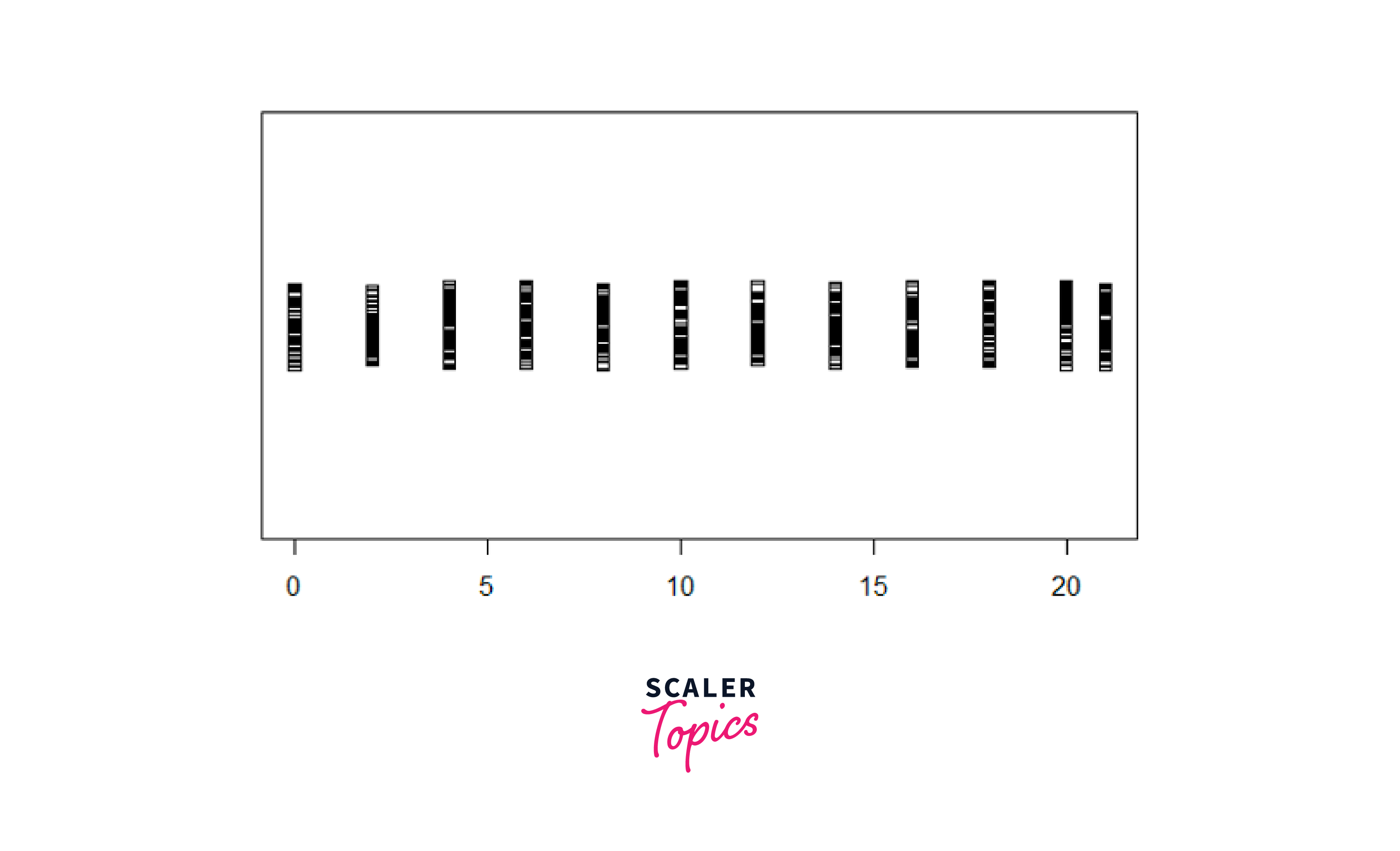 A Strip Chart in R is a simple way to show data on a graph. It's like a line of dots or short lines along a single line. Each dot or line represents a data point, and its position on the line is based on its value. The stripchart() function in R is commonly used for creating basic strip charts.