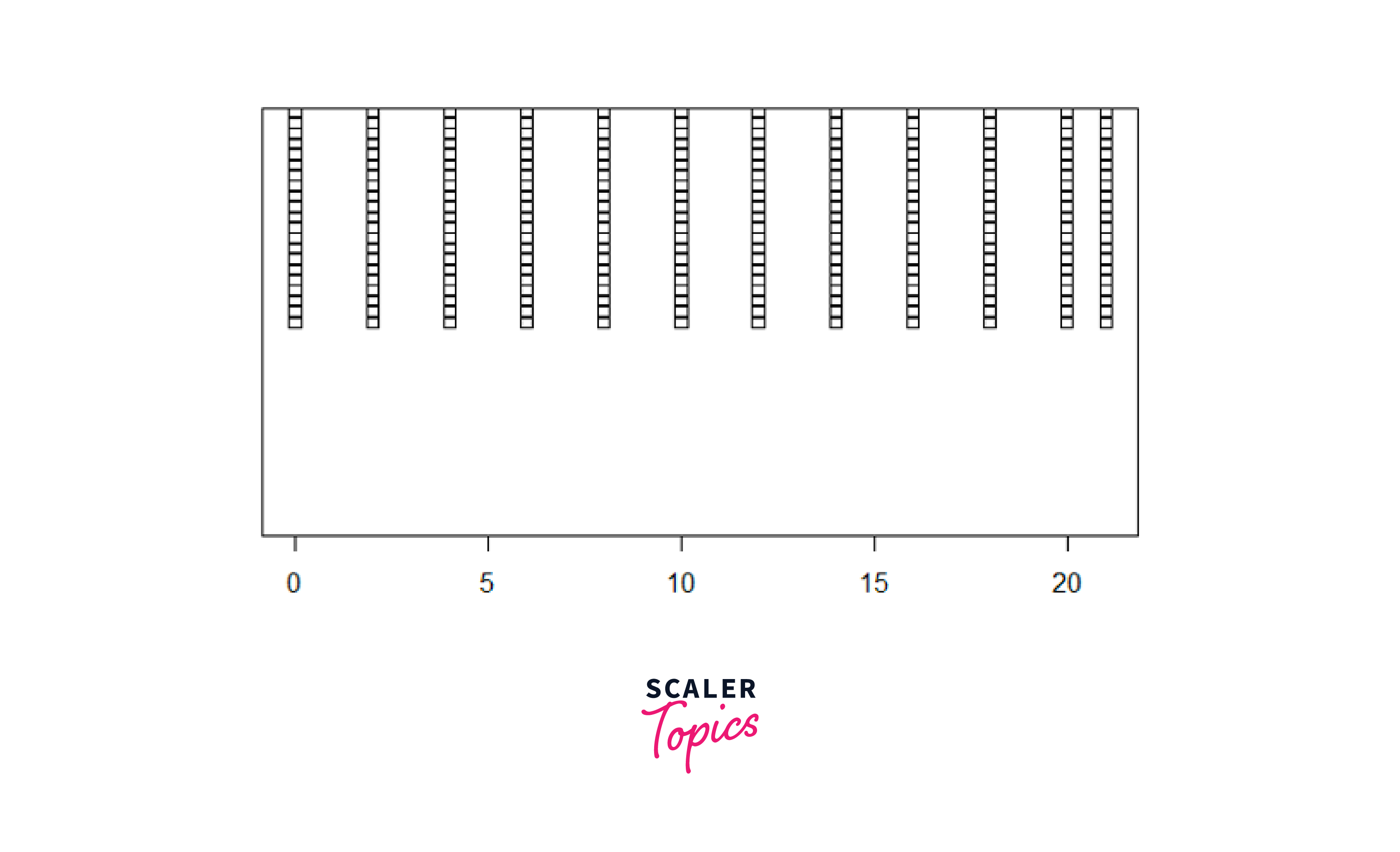 In this example, the box plot displays the data distribution in the sample_data data frame, and the stripchart overlays jittered blue points on top of the boxplot. We have set the add argument inside the stripchart() function to TRUE to add the stripchart to the existing plot, and the vertical argument, which is also set to TRUE, indicates that the jittered points should be displayed vertically. This combination of boxplot and stripchart helps us to visualize the central tendency and spread of the data points in the "sample_data" data frame.