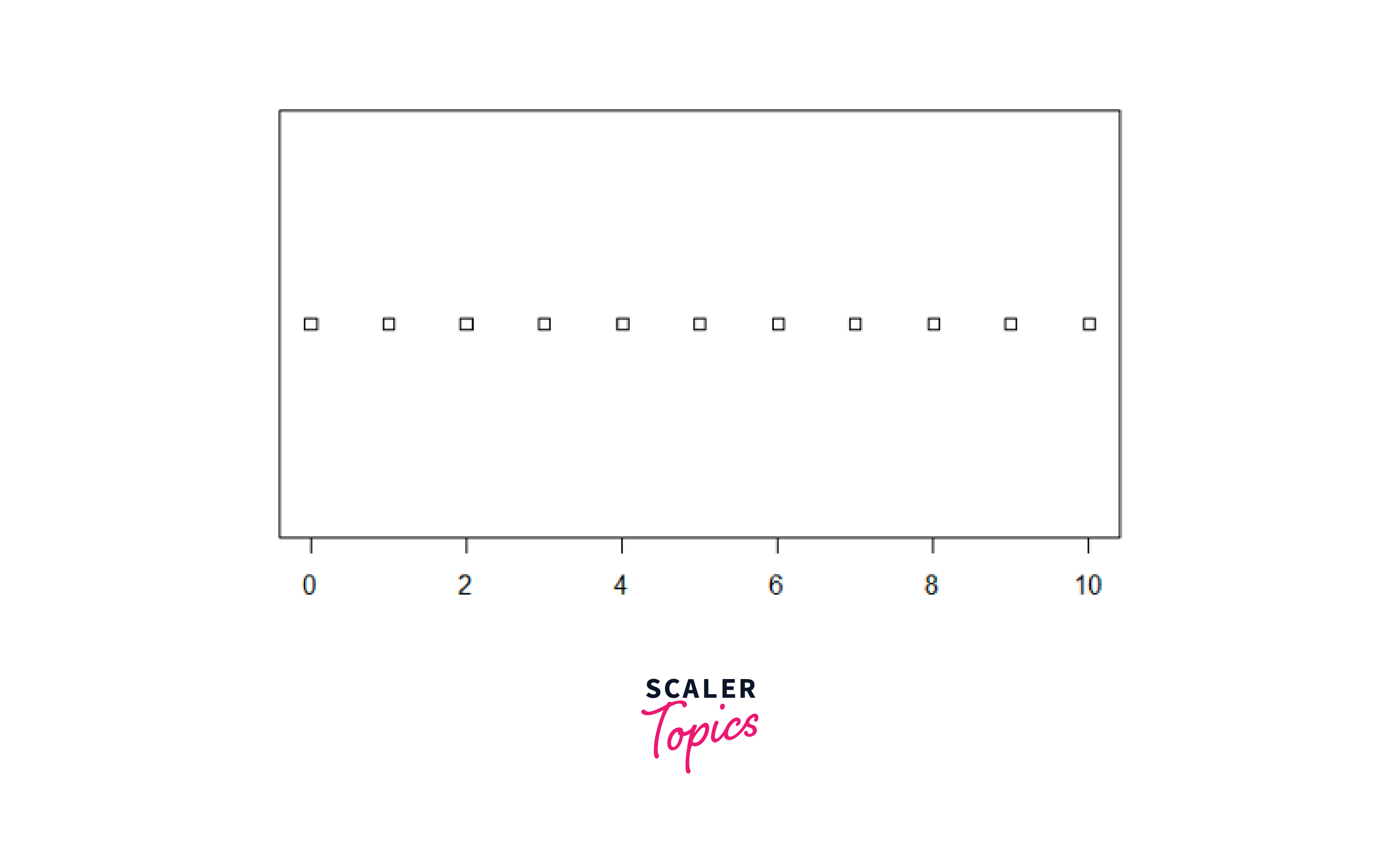 Next, we will discuss the different ways to create a strip chart in R, for which we first create a numeric vector 'x' containing 120 random values between 0 and 10 using the round() and runif() functions, as shown below.