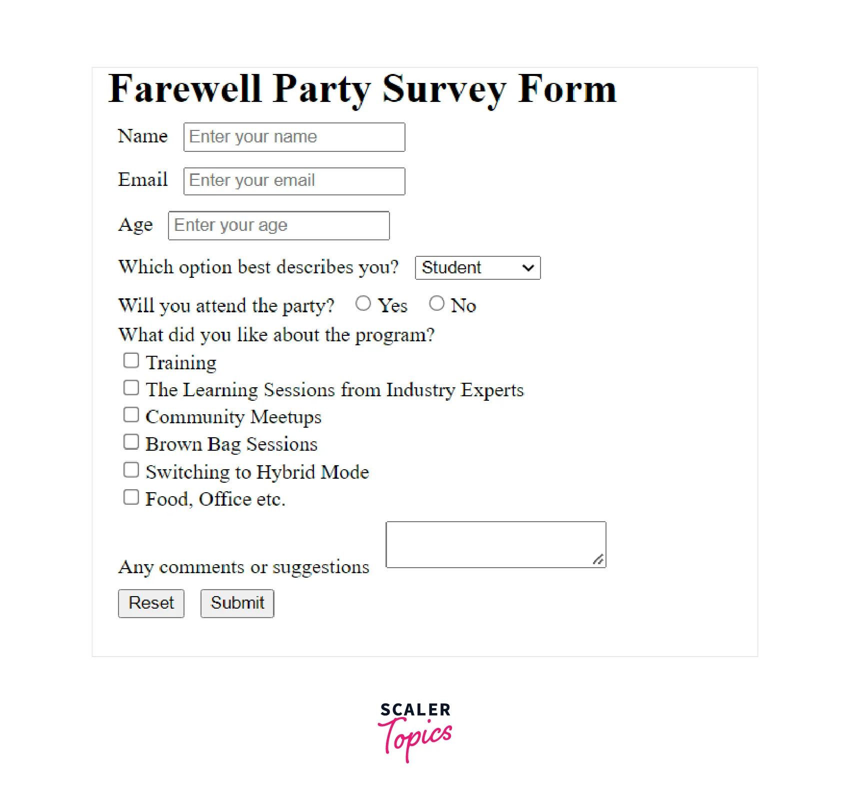 The code and output of the basic HTML structure of the form are as follows.