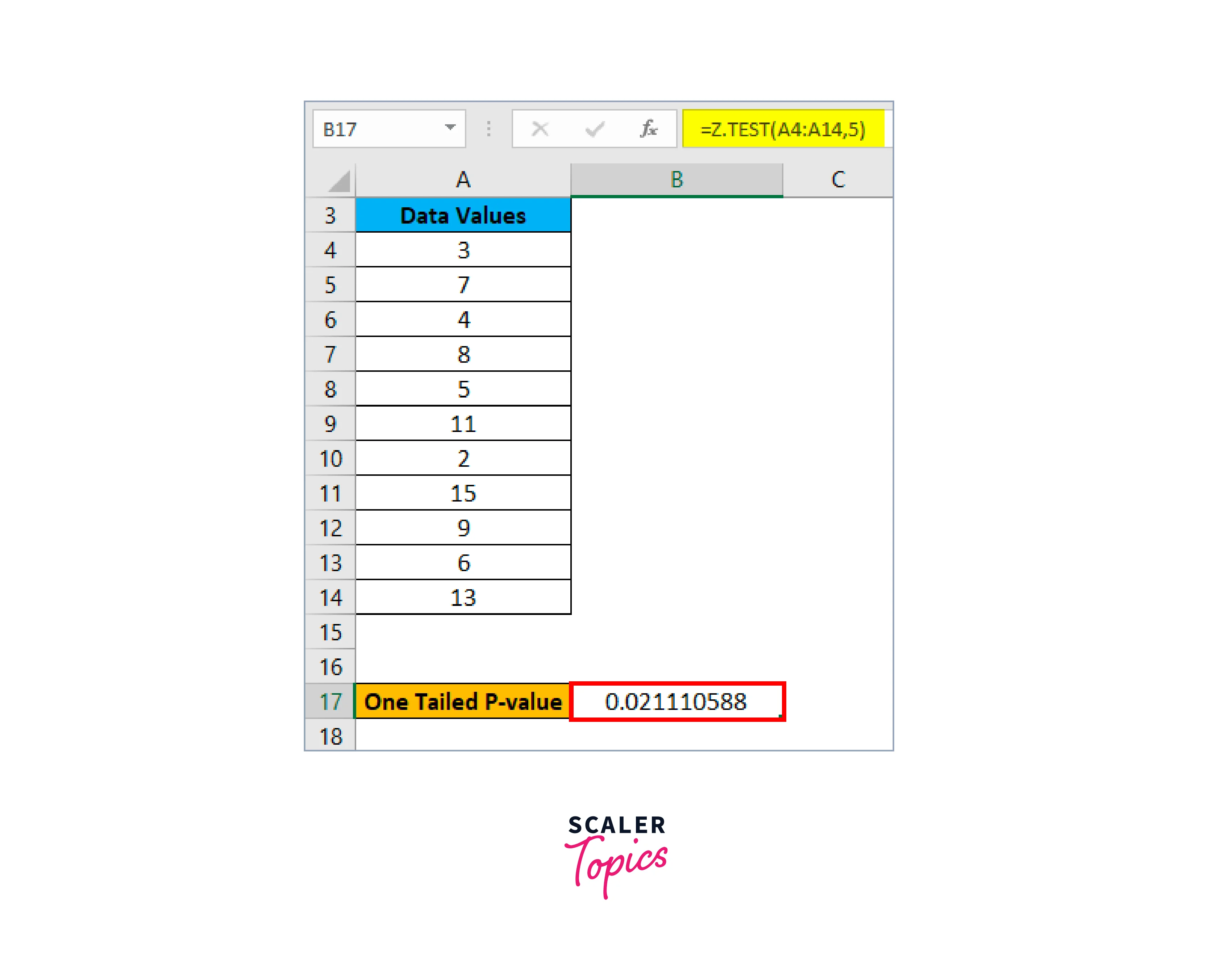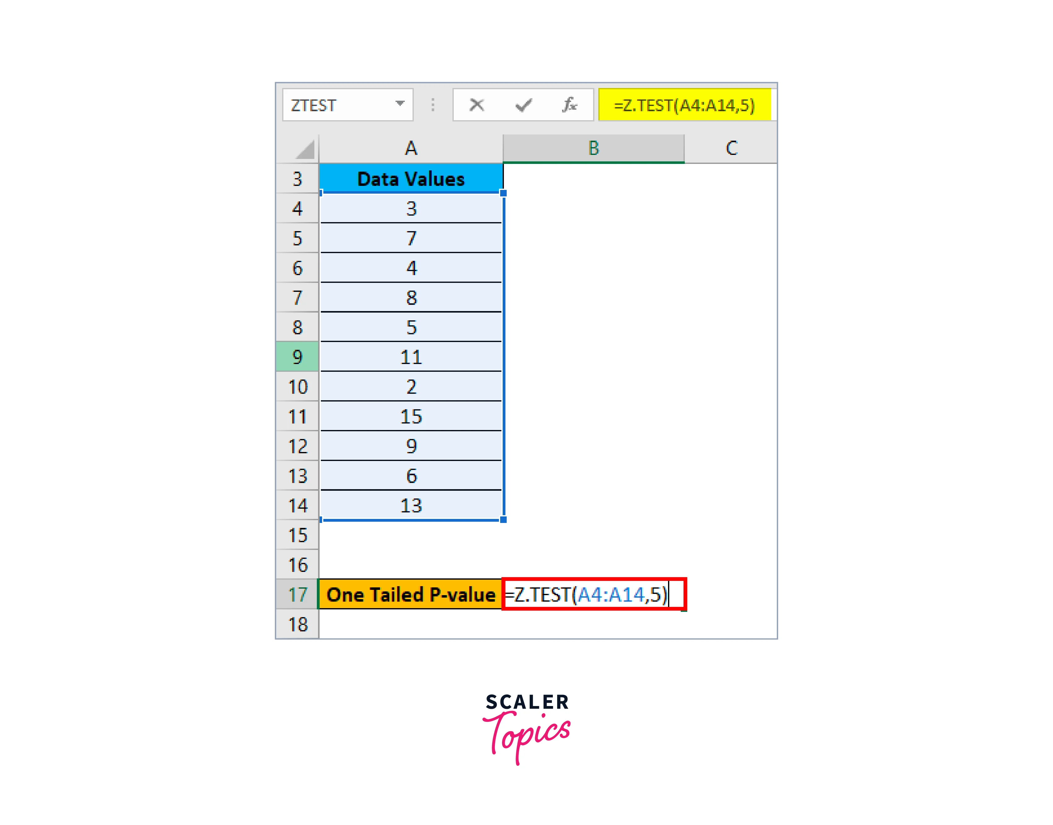 The Z TEST function, a statistical function, is used when just one dataset is available. This Z TEST function in Excel offers the one-tailed probability value of a test.
