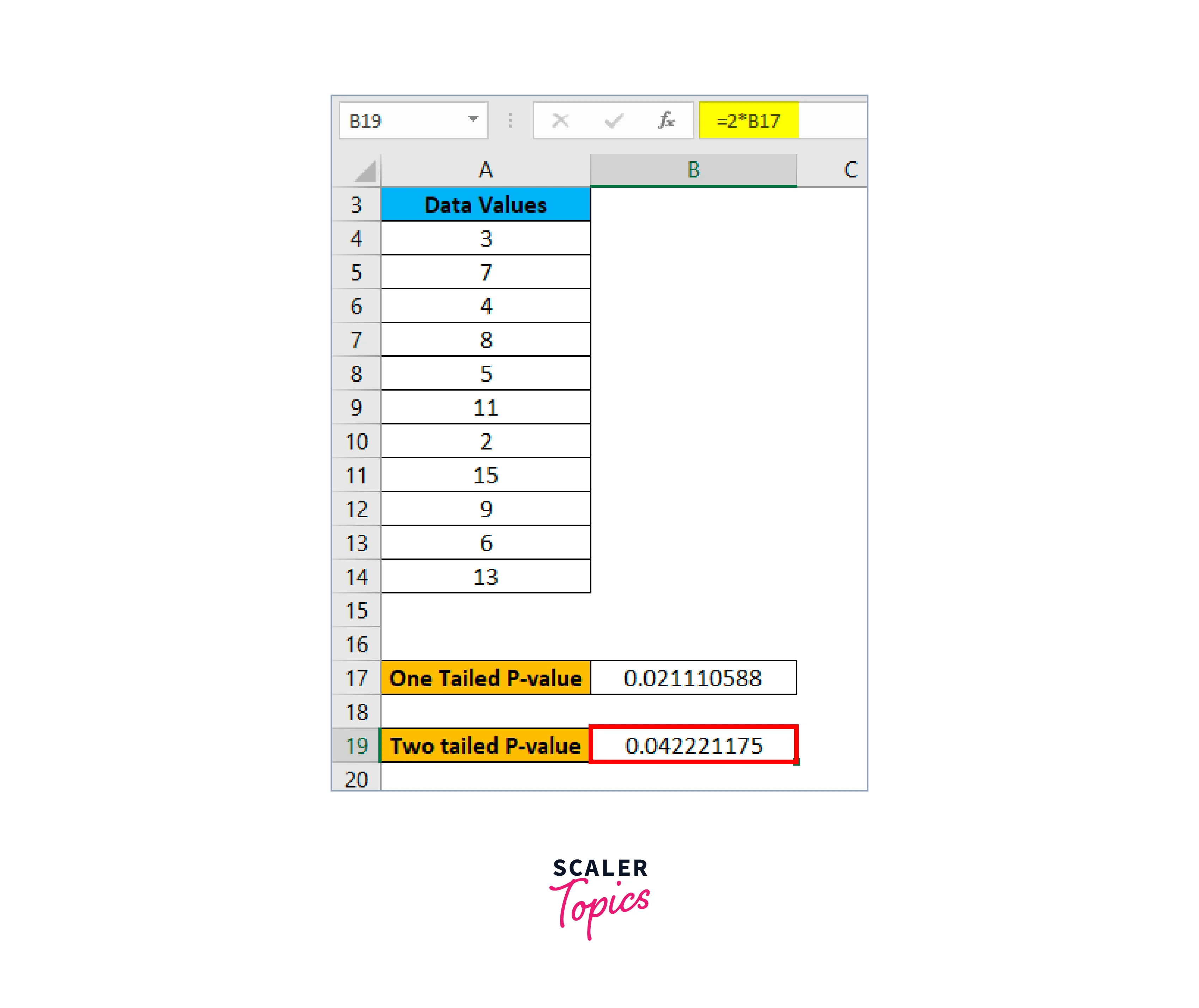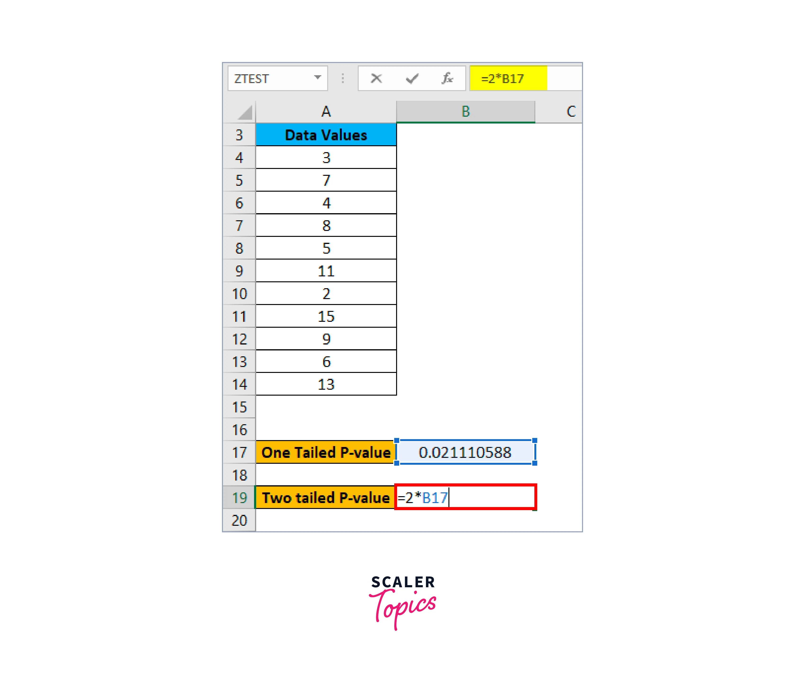 Using the above approach, we can also get the two-tailed probability of a Z TEST in this situation. With the given hypothesized population of 5, the formula for determining the two-tailed P-value of a Z TEST is shown below.
