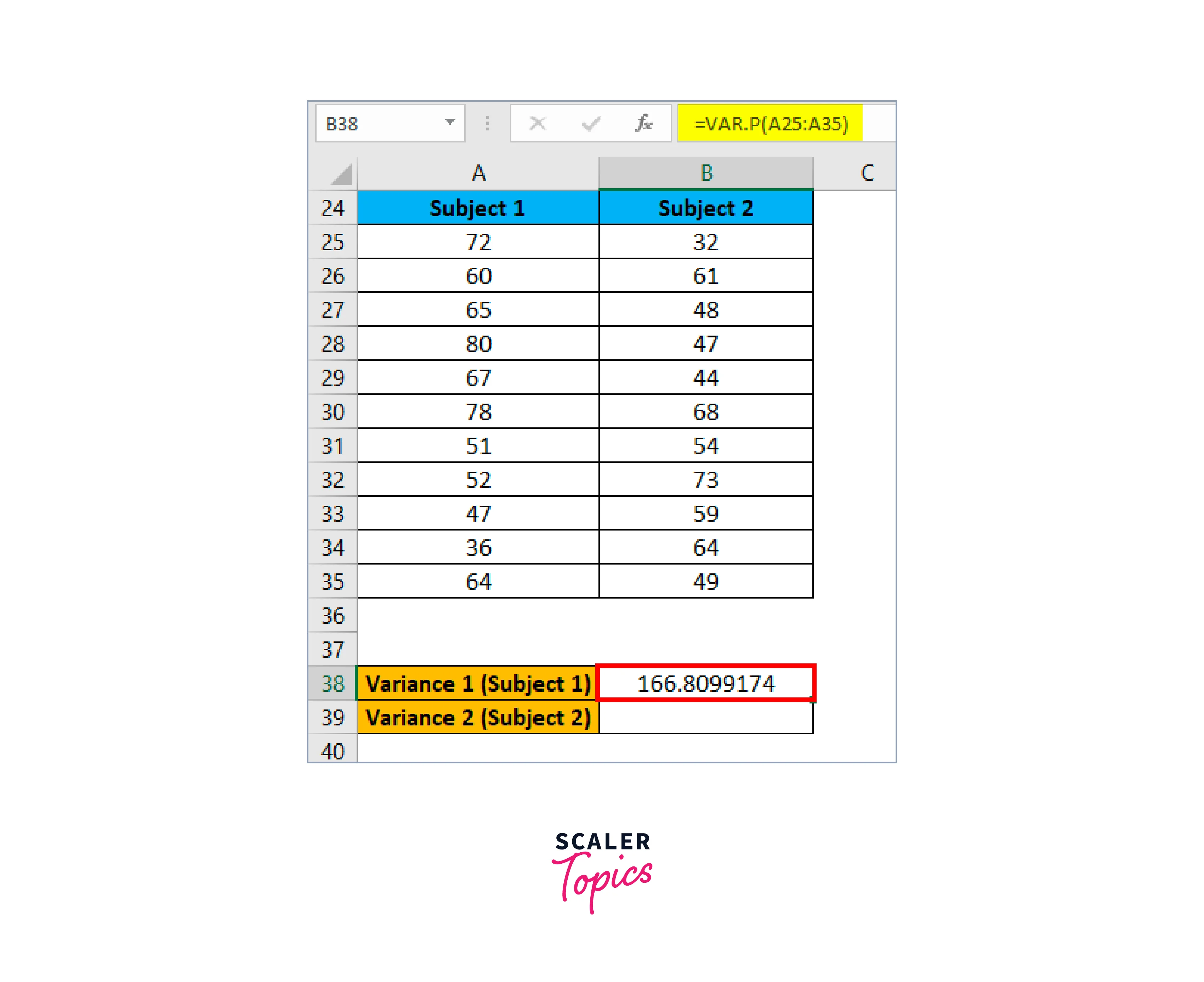 - Enter the variance value from cell B38 in the Variable 1 variance box.