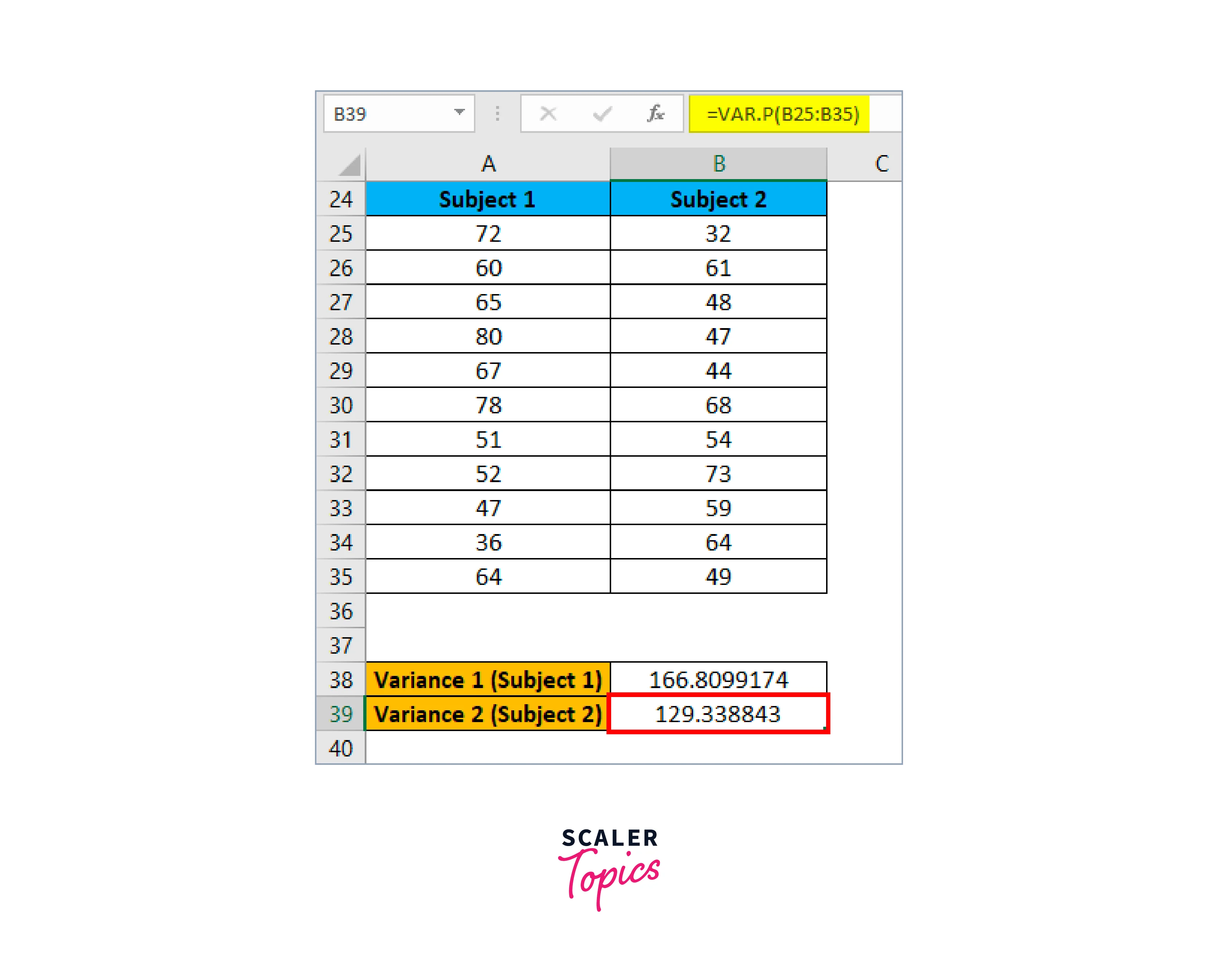 - Enter the variance value for cell B39 under the Variable 2 variance box.