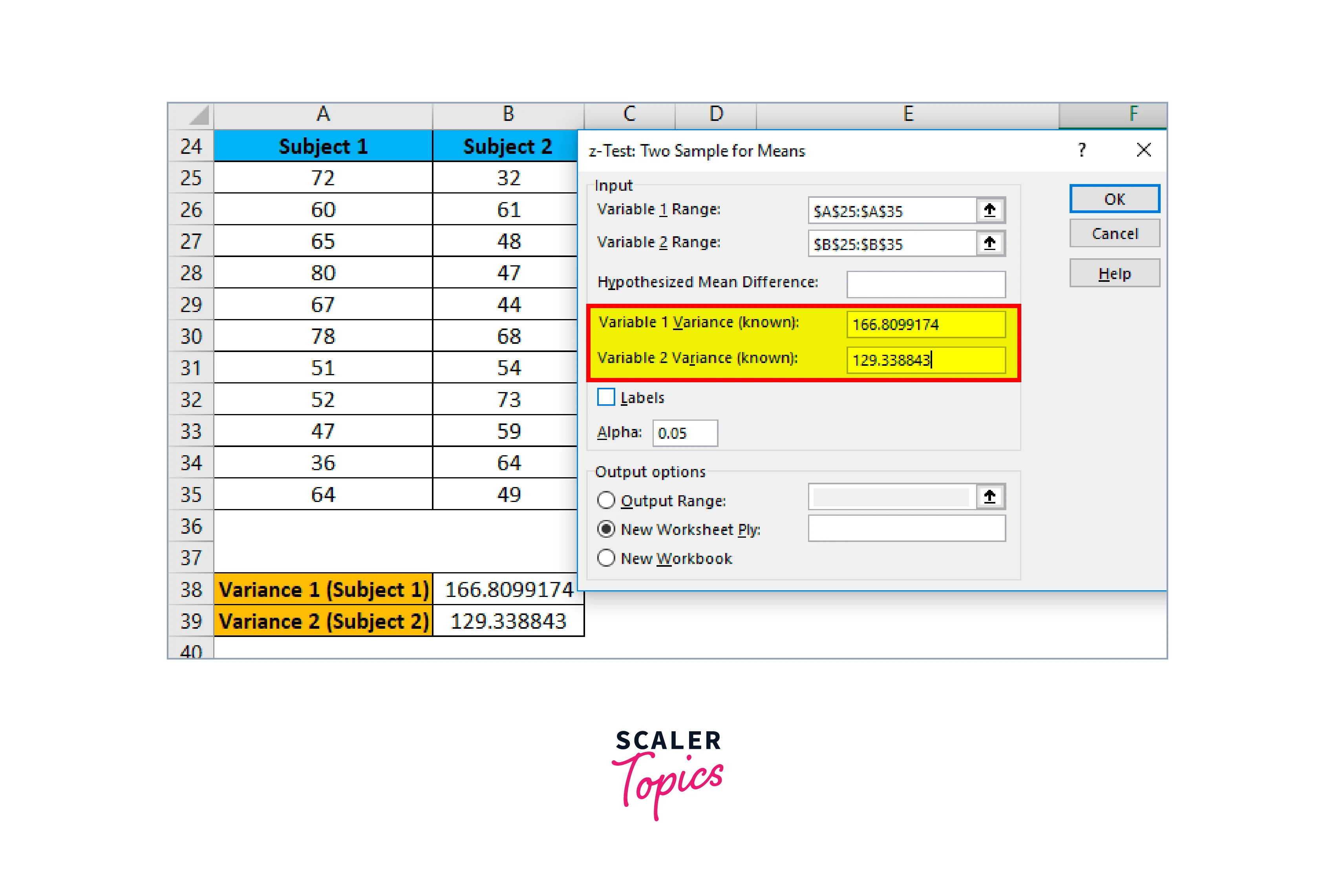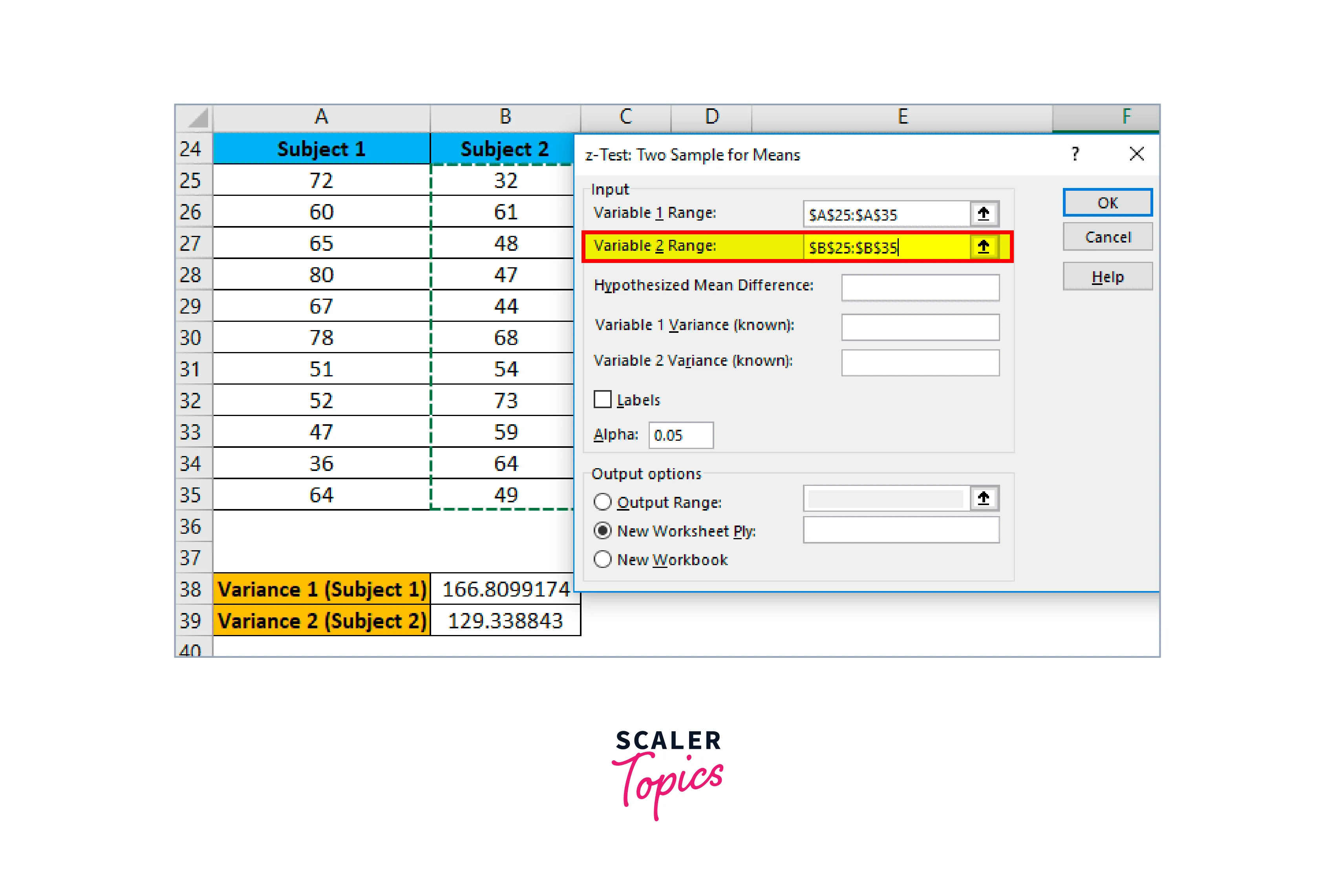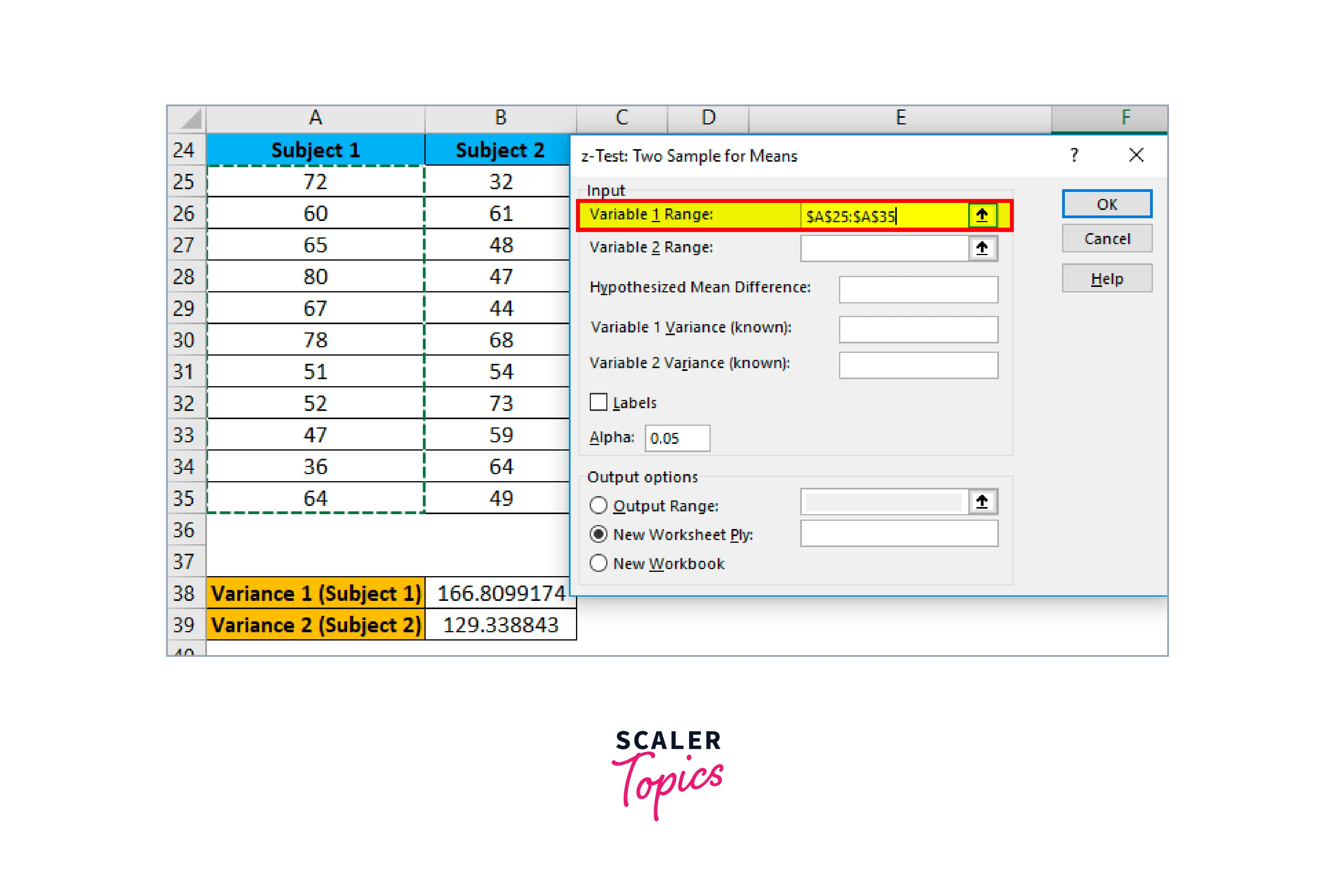 We compare the means of two datasets in Excel that are equal or not by using the Z-Test. The Z-Test function in Excel requires an array, the X value (the hypothetical sample mean), and the Sigma value according to the syntax (Optional). Most of the time, it is assumed that X has at least a 95% chance of falling between 0 and 5. Z-Test can also be performed using the Data Analysis option on the Data menu item. We require two variable ranges with two variations for each range. We shall reject the null hypothesis if Z< Z Critical.