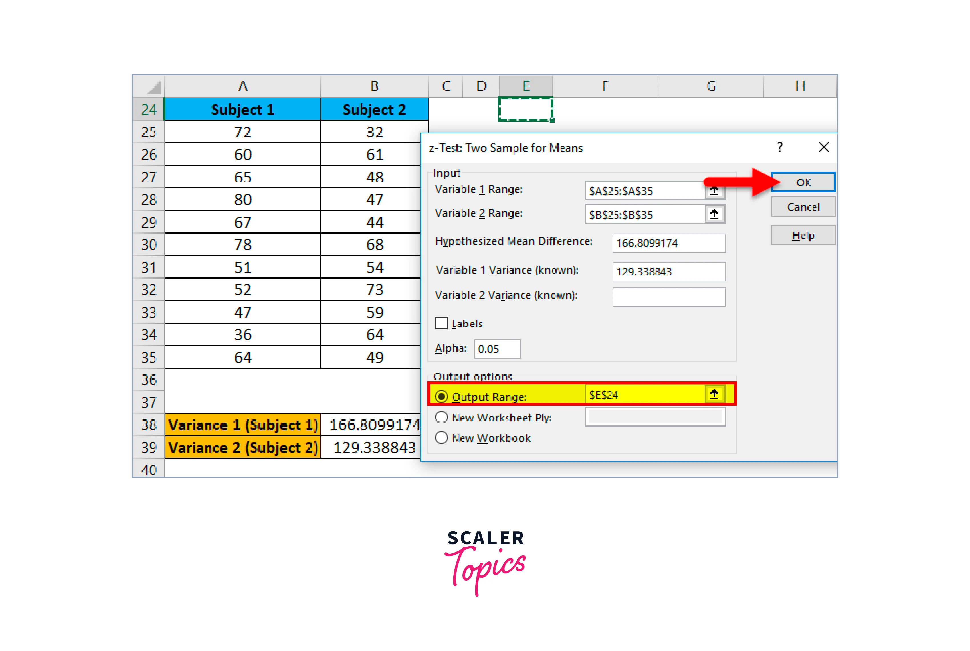 - Choose the cell in the output range where you wish to see the outcome. After passing cell E24 in this case, click OK.