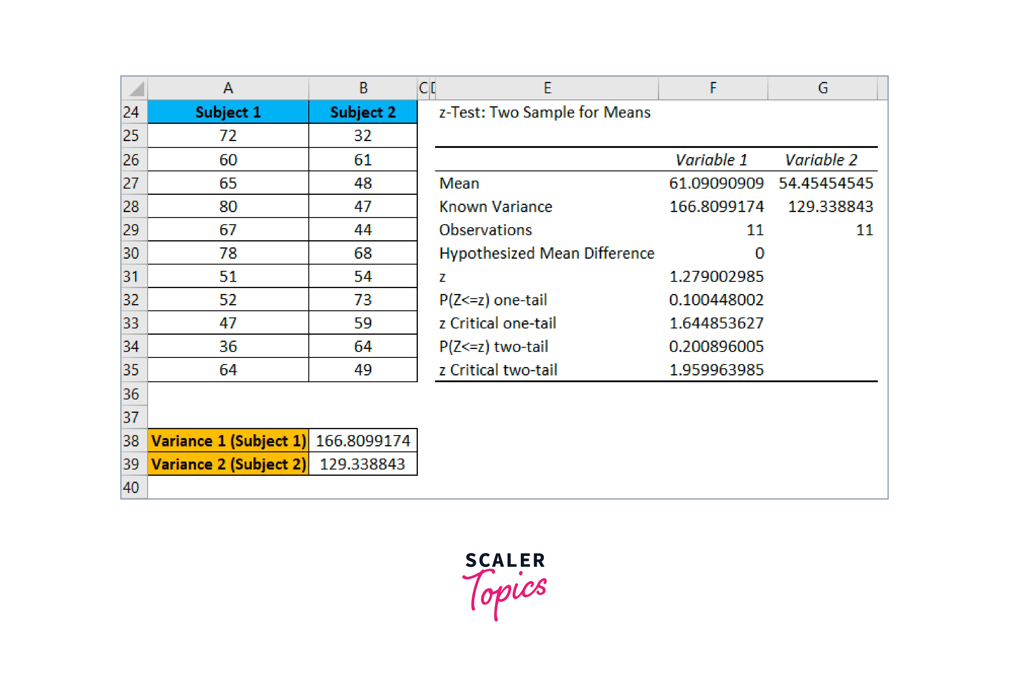 Let's look at some examples to better understand how Excel's Z-Test Function operates. We have provided the values shown below: