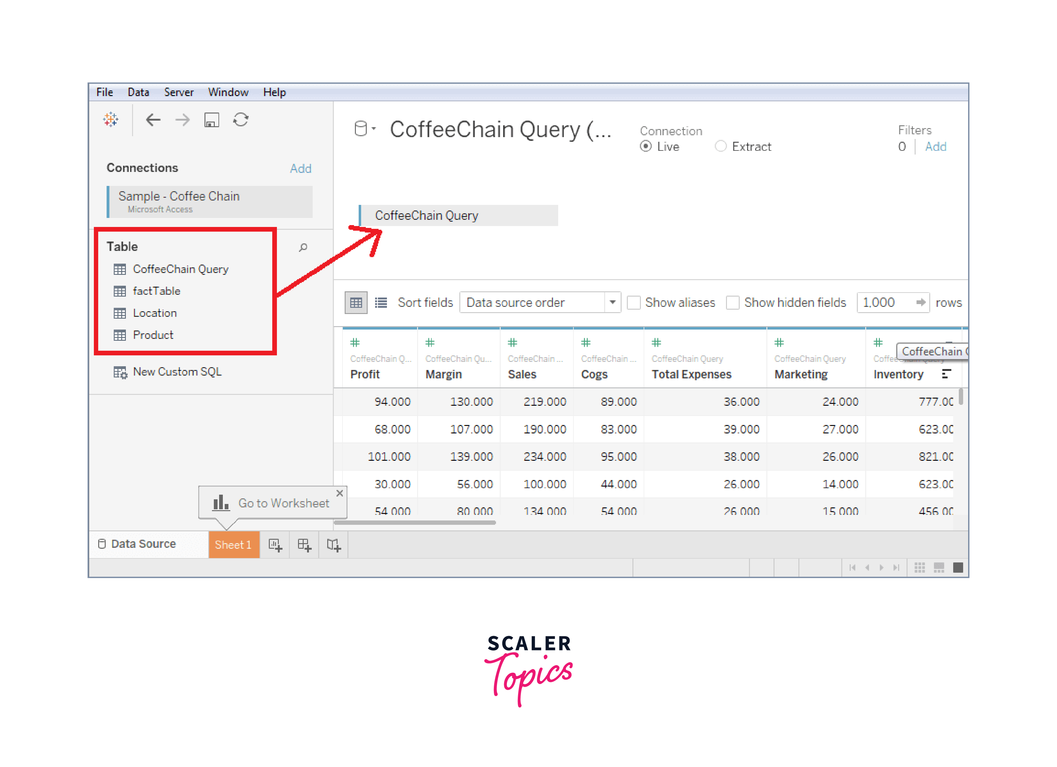 - Primary and Secondary Data Source: The primary data source is the one initially brought into the Tableau canvas. Additional data sources are considered secondary sources, and the join is established between them.