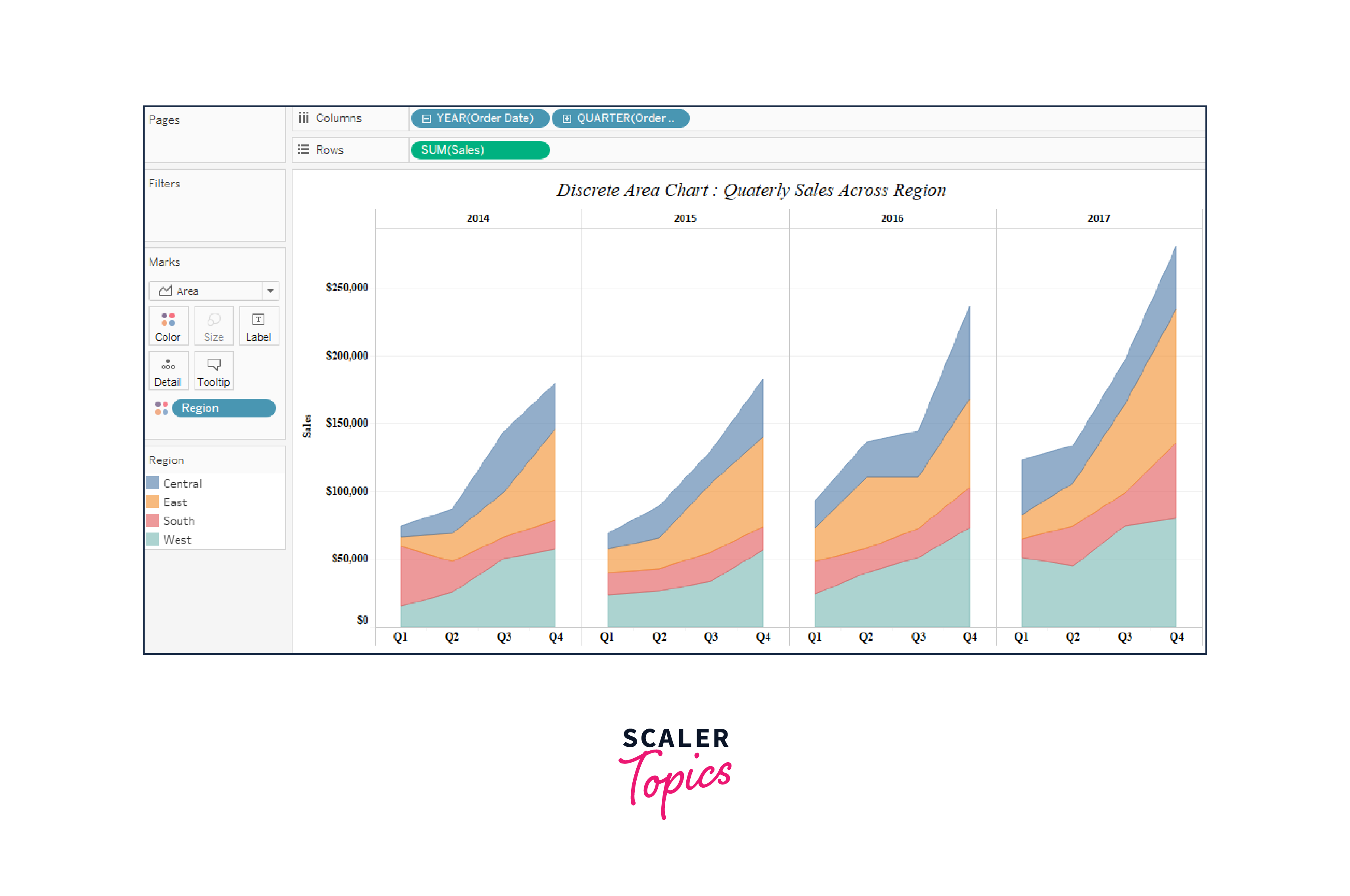 - Visualizing Proportions: Area charts can represent proportions over time, such as the distribution of market share.