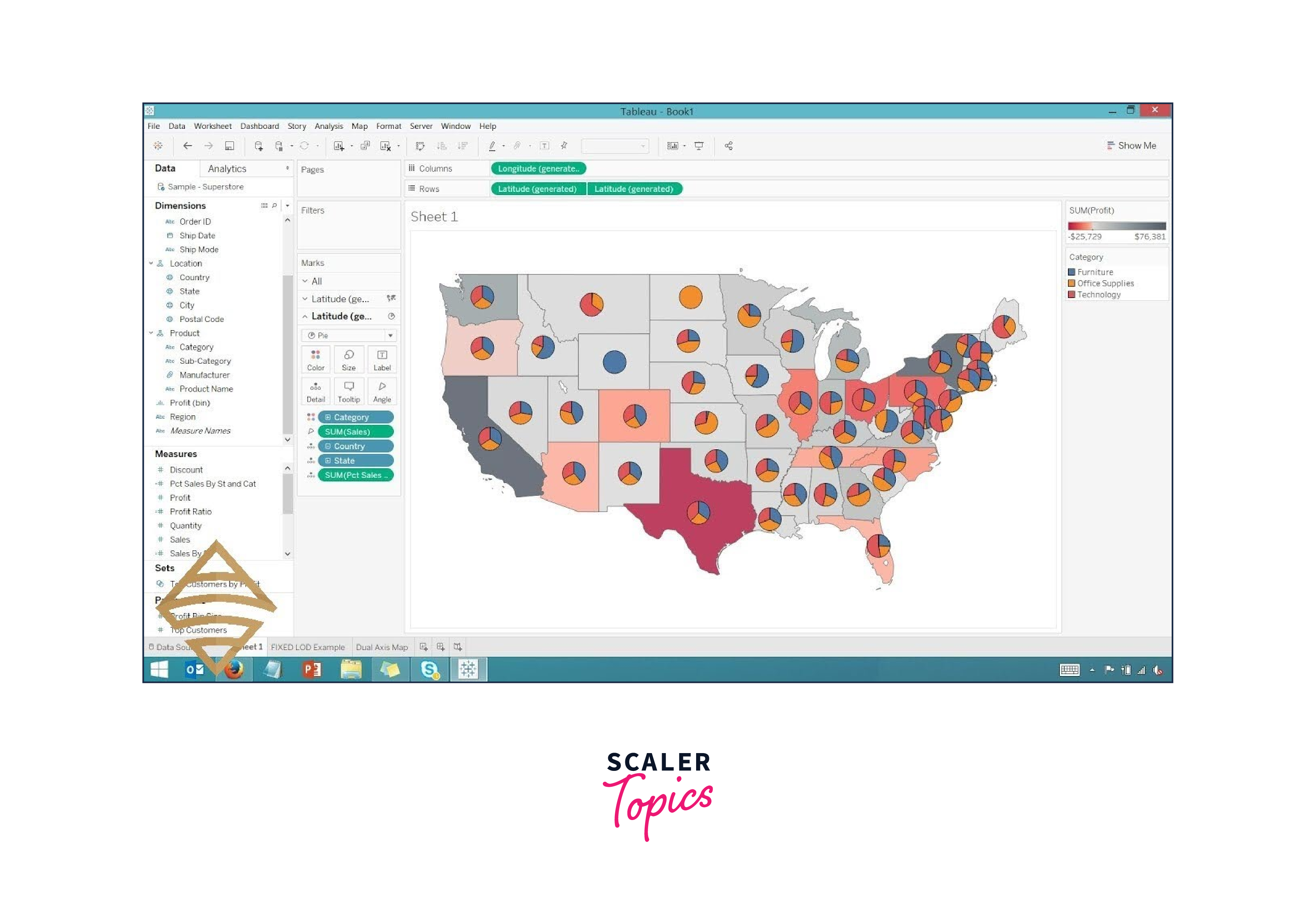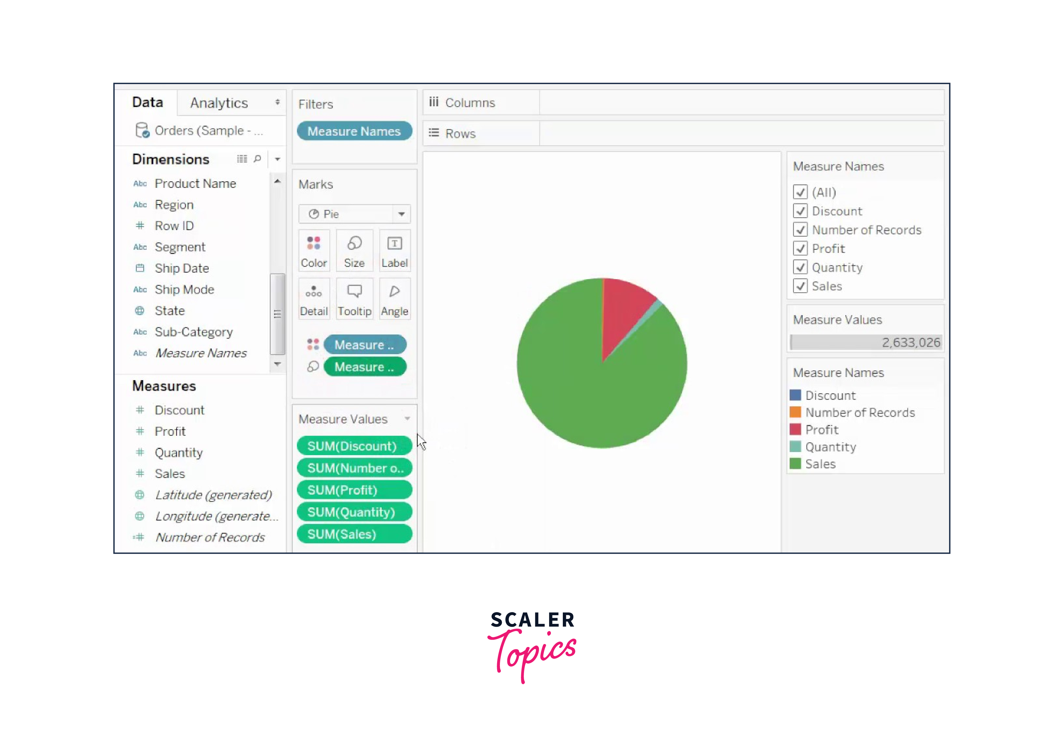 Creating a Pie Chart: To create a pie chart in Tableau: