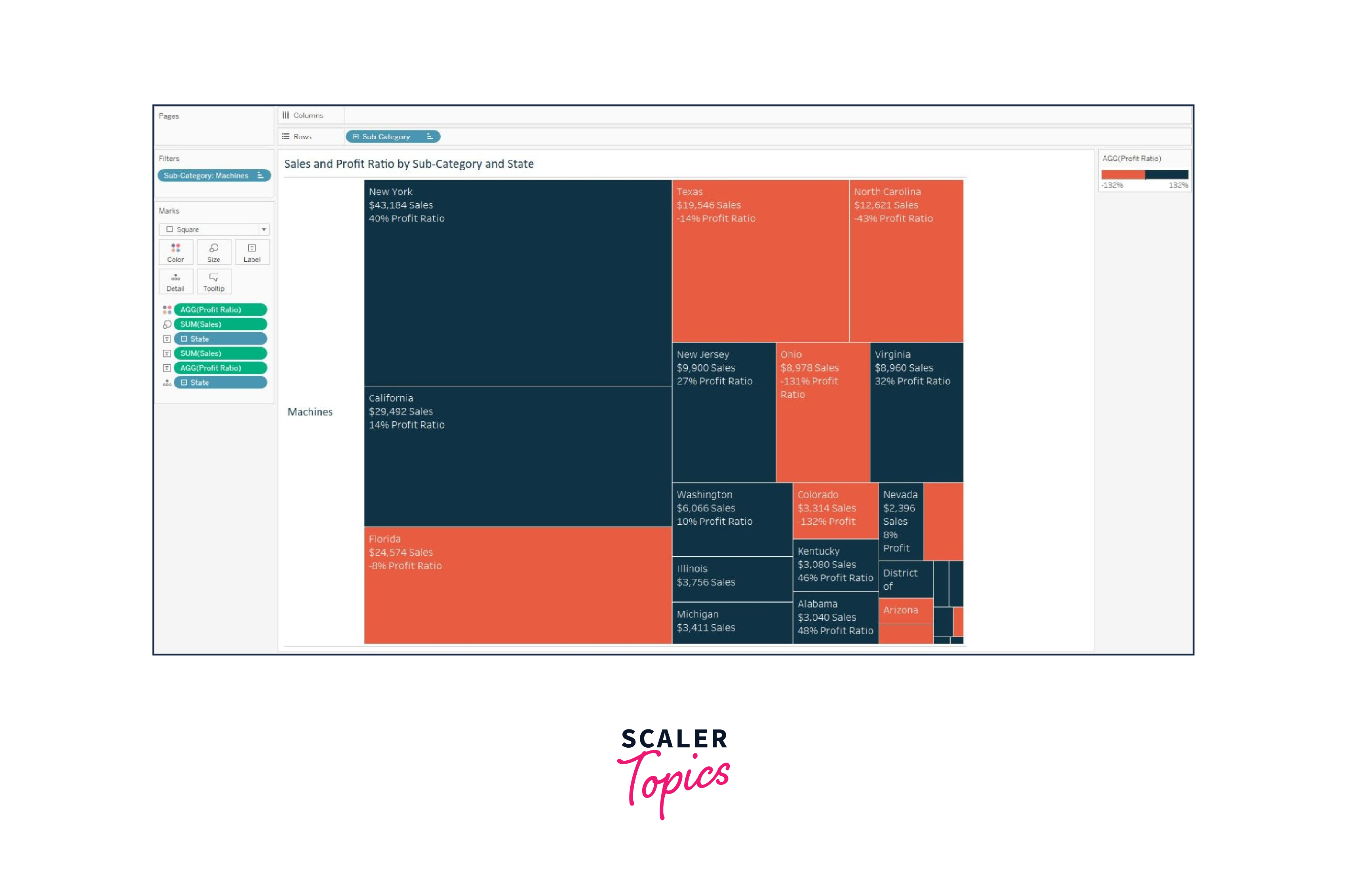 - Size and Color Encoding: Drag a measure onto the "Size" shelf to determine the size of the rectangles. You can also drag another measure onto the "Color" shelf to encode information with colors.