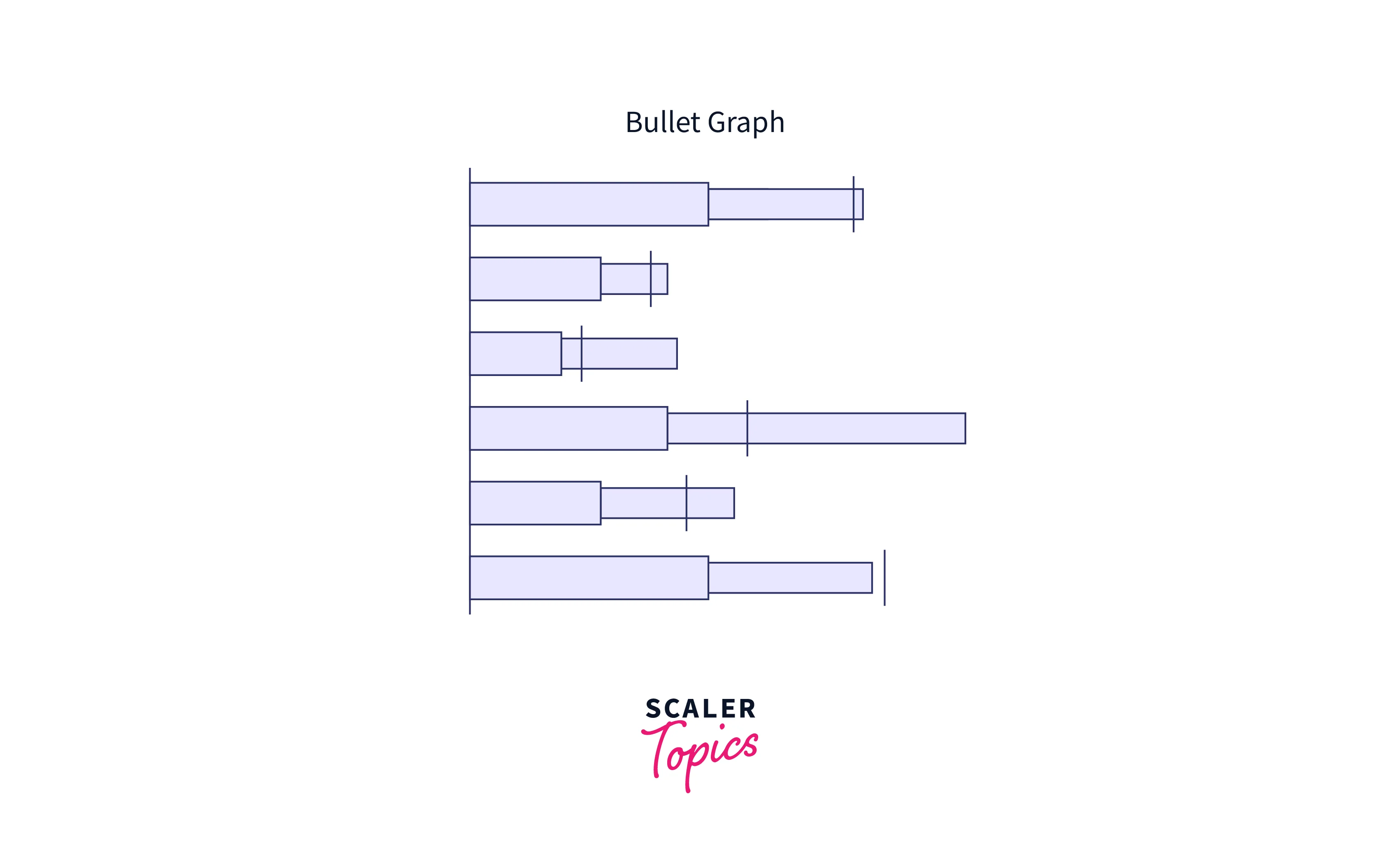 A bullet graph is a form of Tableau data visualization used to show progress toward a goal. For example, a bullet graph might be a chart that shows sales income over time, with colored bars representing progress toward a monthly sales objective.