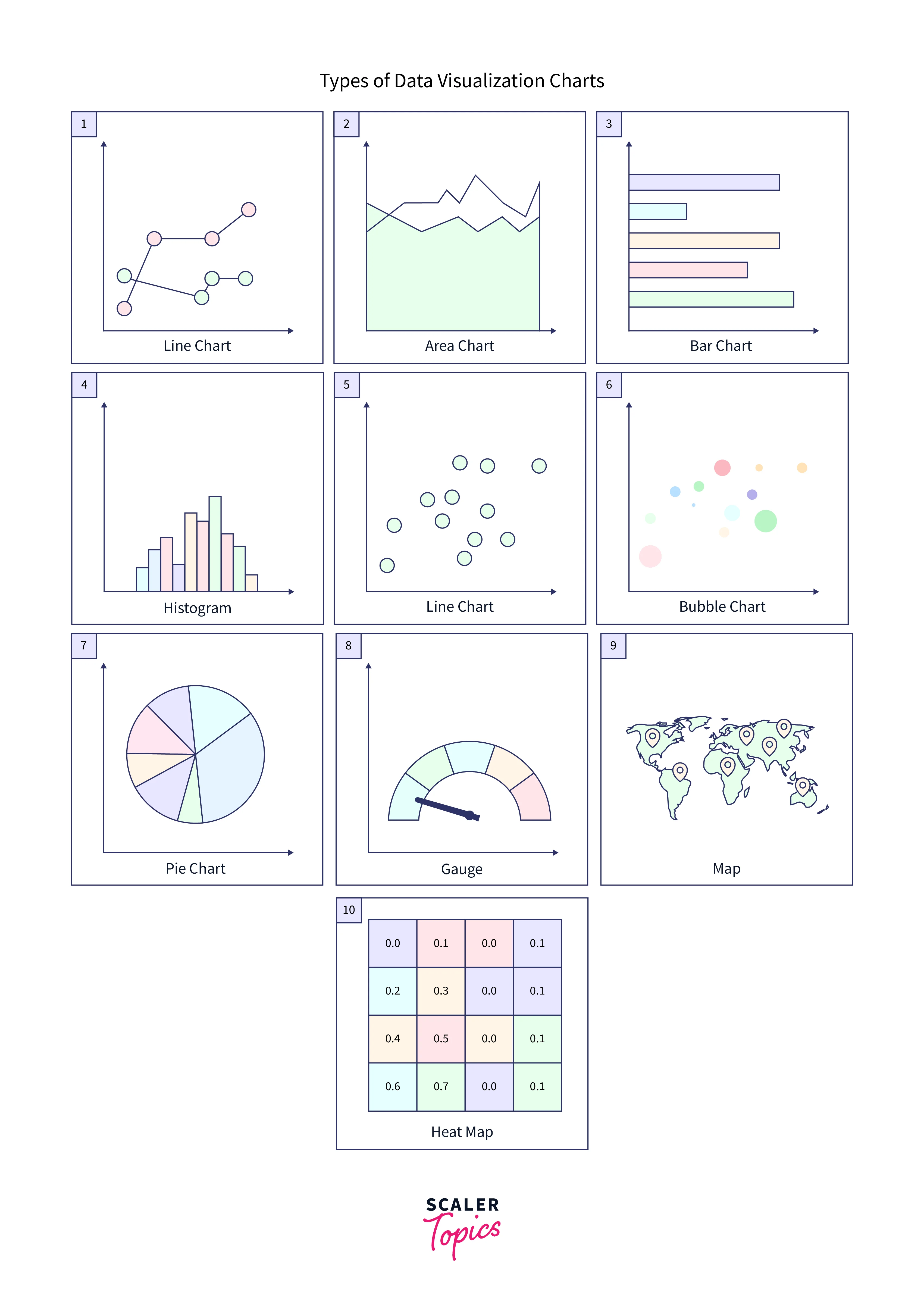 Charts are one of the most used visual elements in data visualization, as they provide a clear and succinct approach to displaying data sets and identifying relevant patterns and insights. Numerous charts are available, each with its own set of advantages and disadvantages depending on the data being presented and the audience being addressed. Bar charts, line charts, scatter plots, and pie charts are some of the most common forms of charts, and each may be used to depict different types of data in different ways. The sort of chart best suited to your needs will be determined by criteria such as the complexity of your data, the degree of detail necessary, and your research aims. -