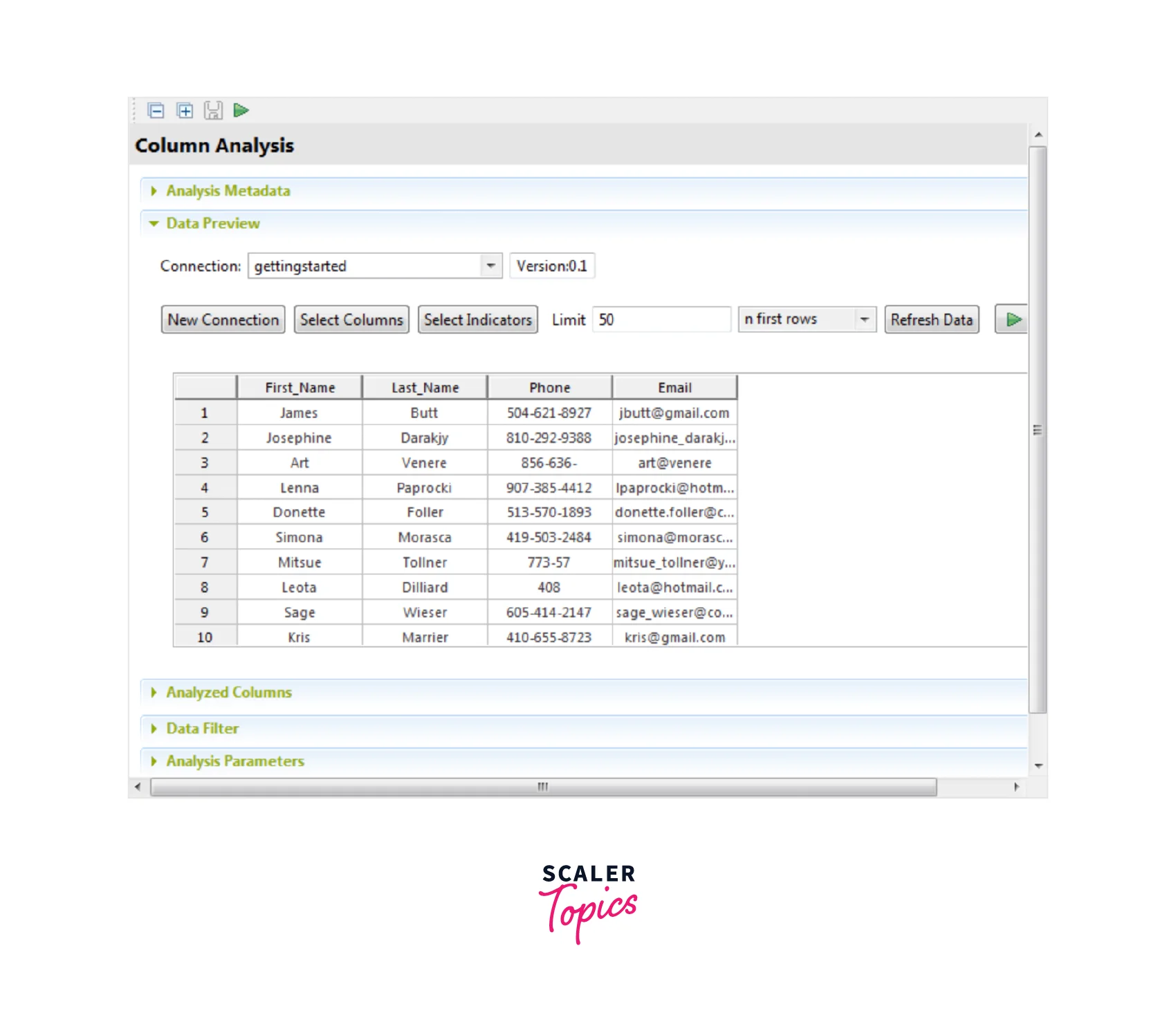- Similar steps could be followed for the Phone number column and it too gets added in the Analyzed Columns section.