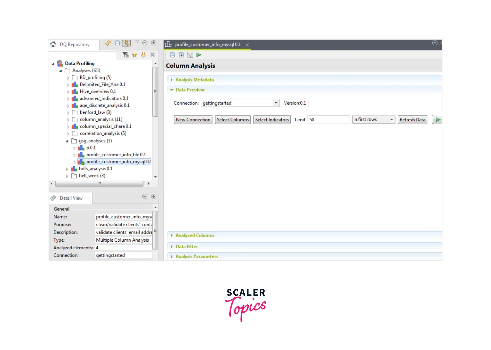 Below is how the output shall be seen. Users can see that the new analysis is given in the Data Quality Repository tree view under the Analysis folder.