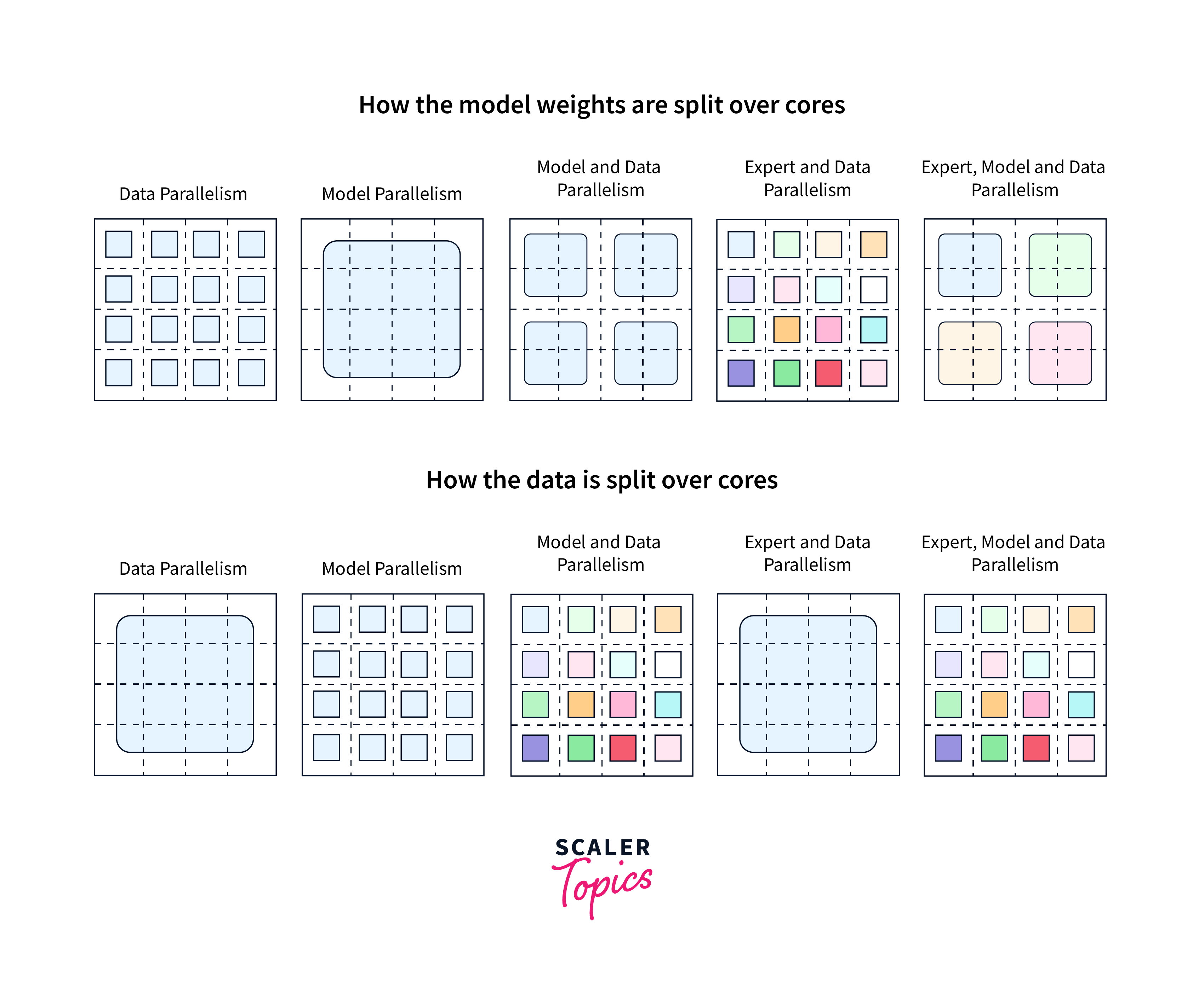 Model Parallelism: Model parallelism is another approach where the model is split across multiple devices or machines, with each device responsible for computing a portion of the model's computation graph. TensorFlow does not natively support model parallelism, but it can be combined with data parallelism using techniques like pipelining or parallel coordinates.