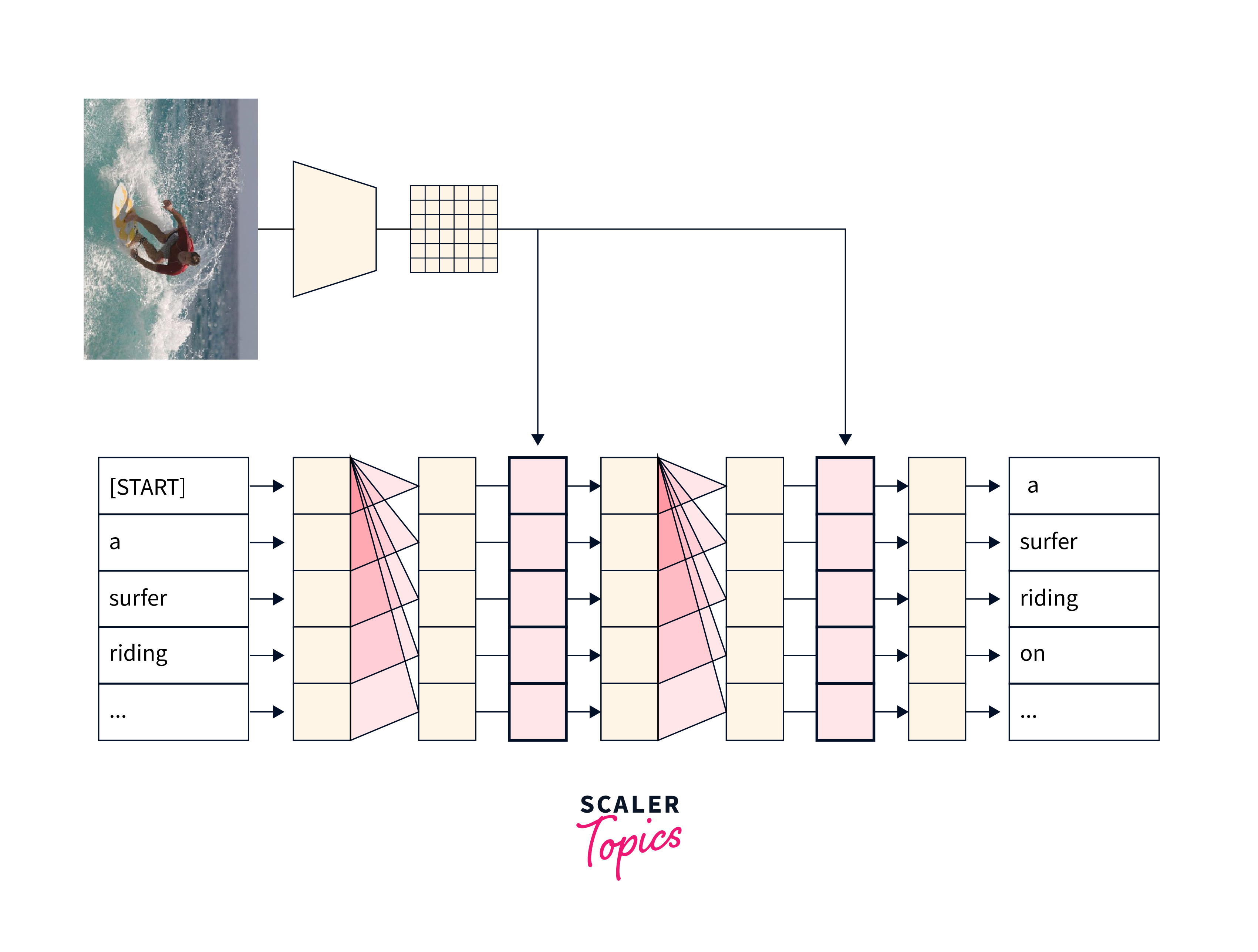 To maintain constant input size throughout training, pad the captions to a predetermined length. This is usually accomplished by inserting special tokens such as start> and end> and filling the leftover spaces with padding tokens. - Image Text Pairing: