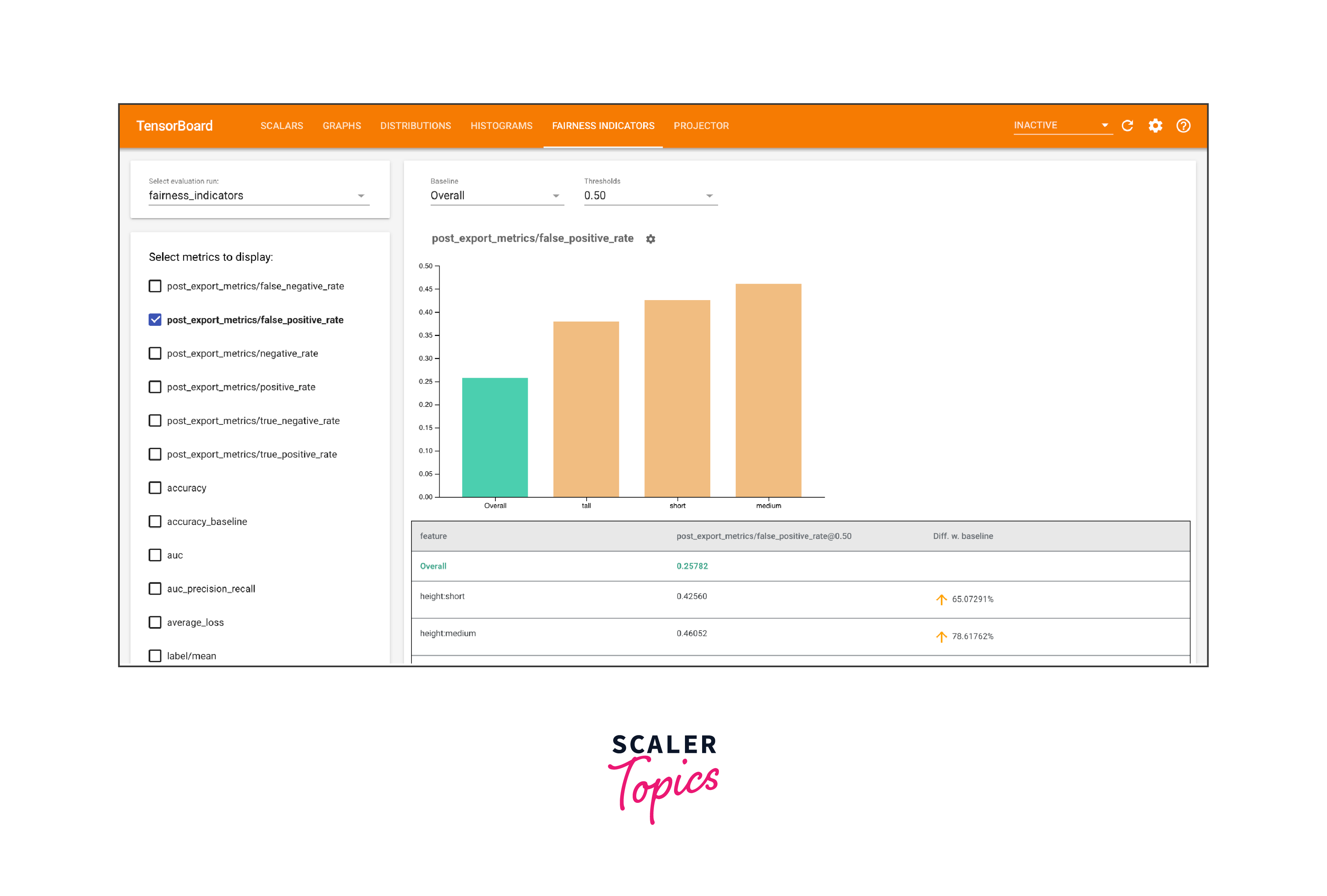 - Debugging Aid: TensorBoard helps in identifying and addressing issues like overfitting or vanishing gradients by allowing users to visualize changes in metrics and model behavior over training epochs.