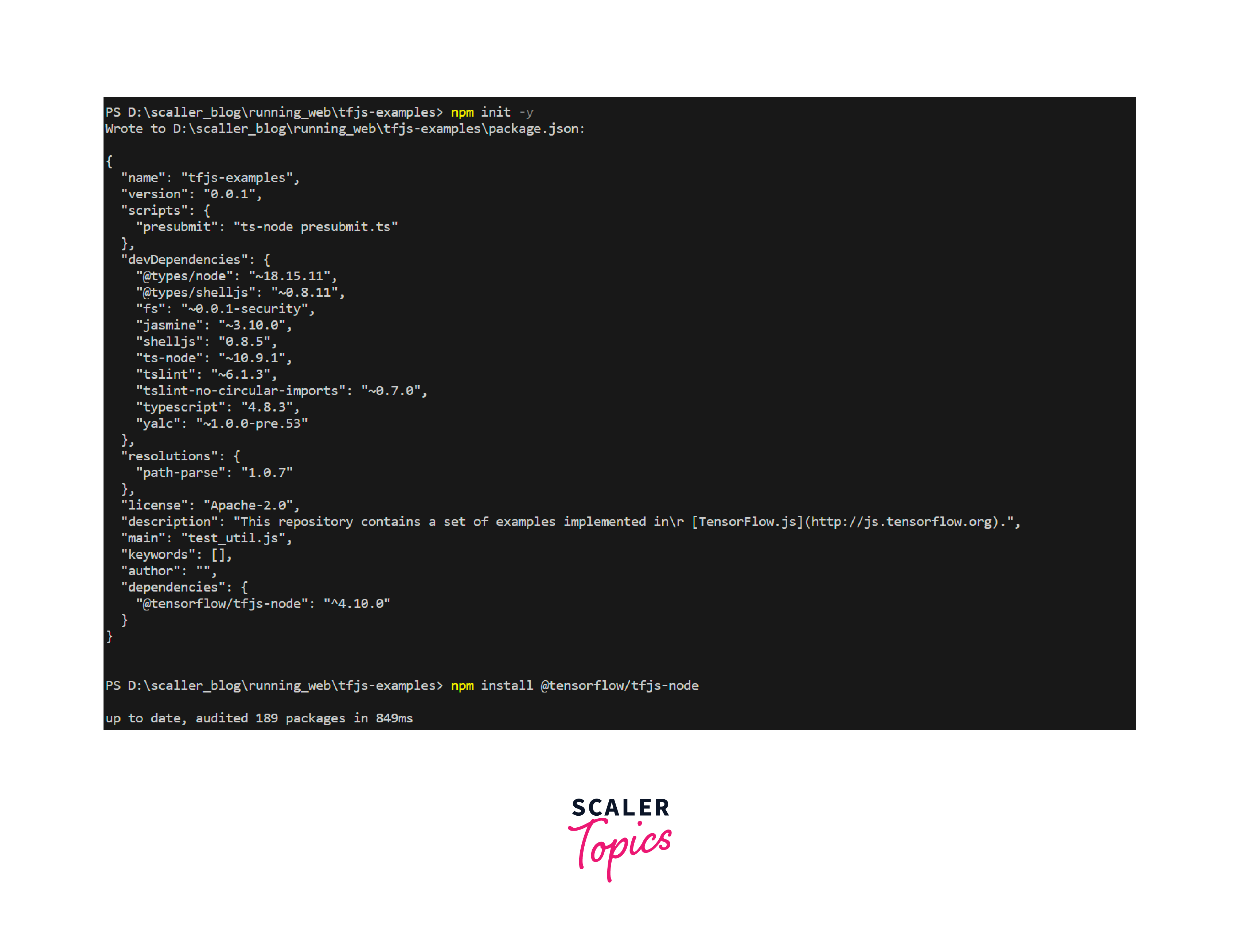 (2) Now you can use TensorFlow.js in your Node.js scripts: