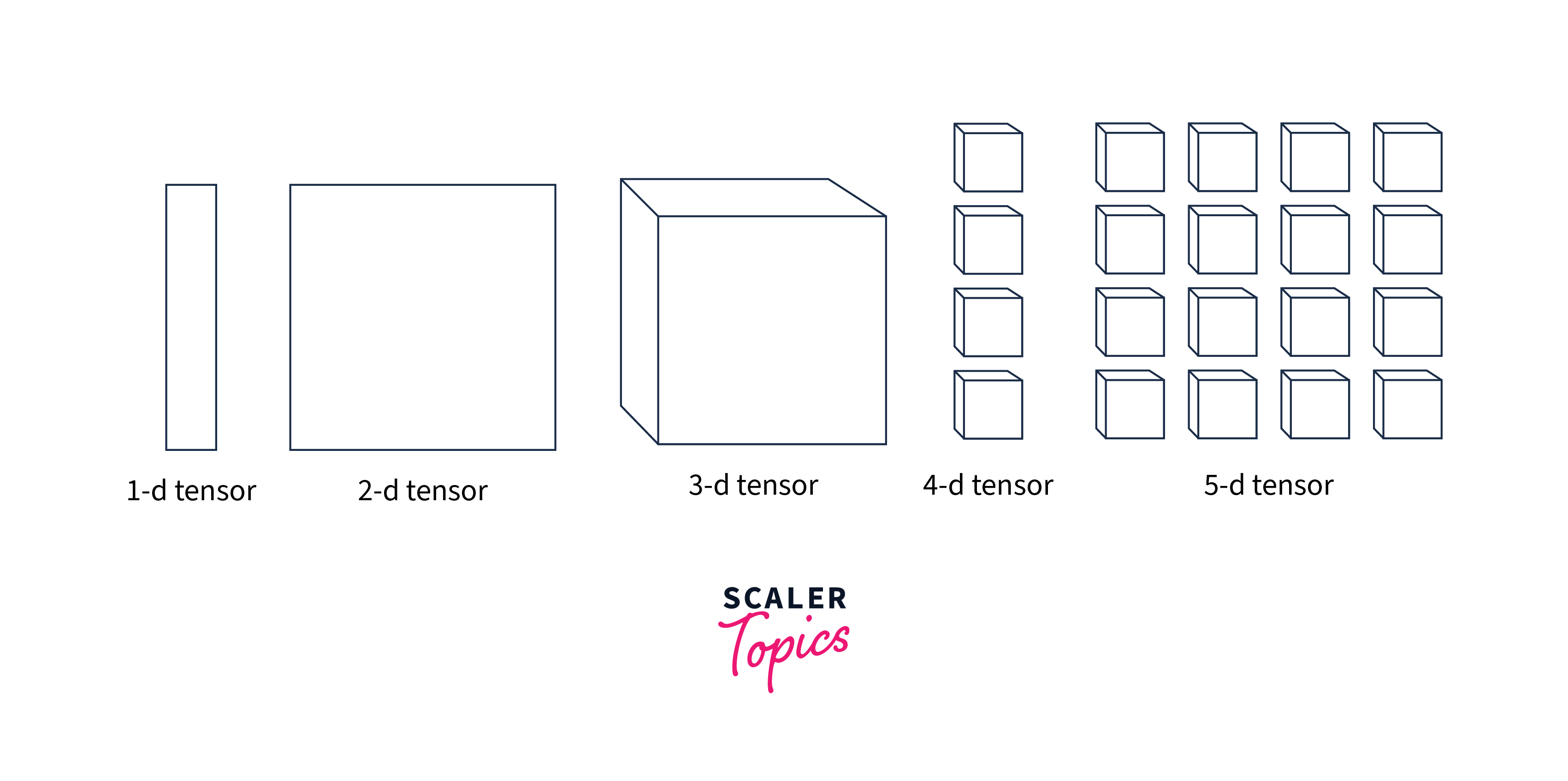 Shape: The shape of a tensor refers to the number of dimensions it has and the size of each dimension. For example, a 1D tensor (also called a vector) has a shape like [5], while a 2D tensor (matrix) might have a shape like [3, 4].