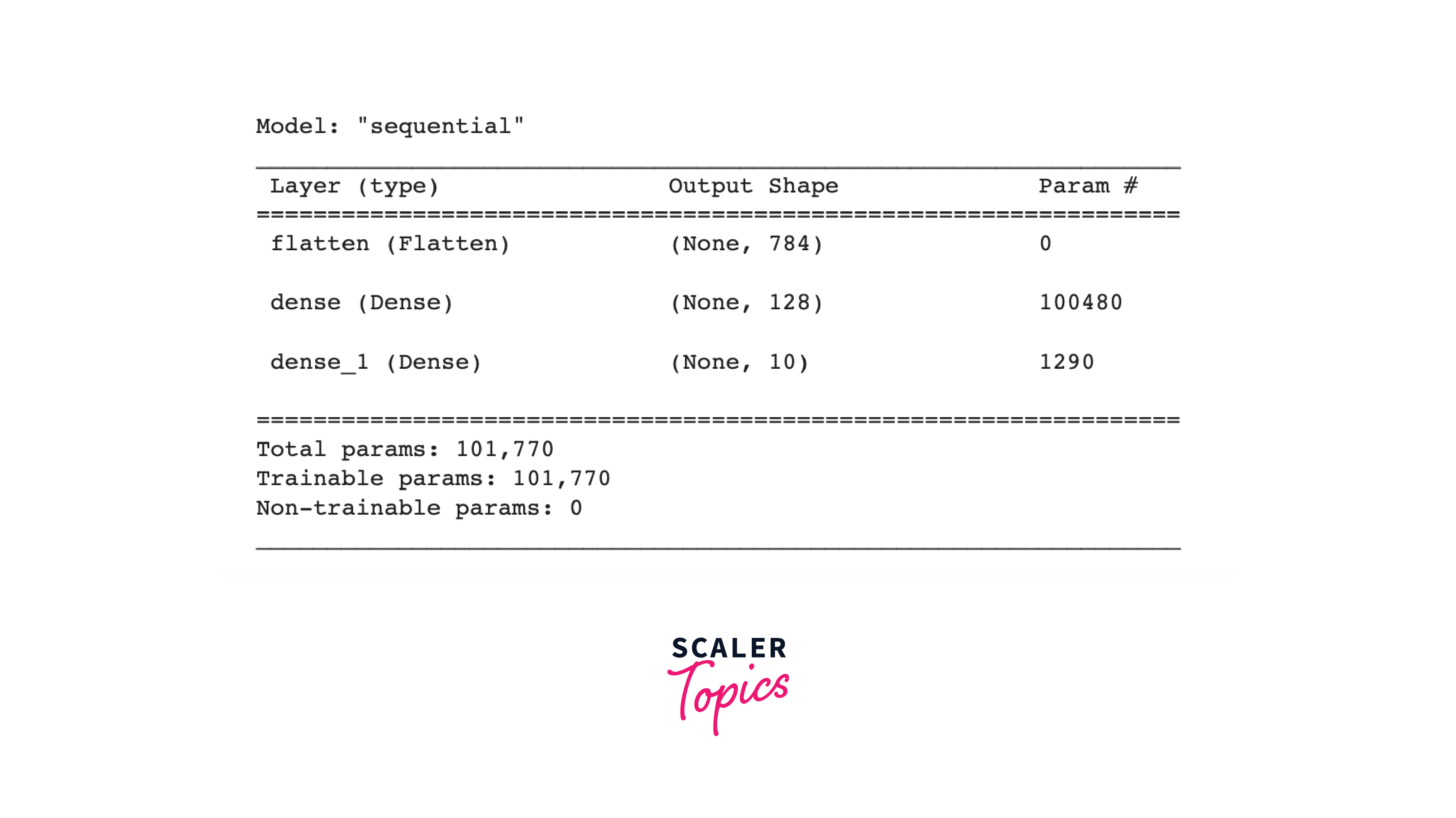 In the above code, the model is constructed with three layers. The first layer, Flatten, transforms the input data, which is a 2D array representing an image (28x28 pixels), into a 1D array (784 pixels). This layer reshapes the image pixels without any learnable parameters.
