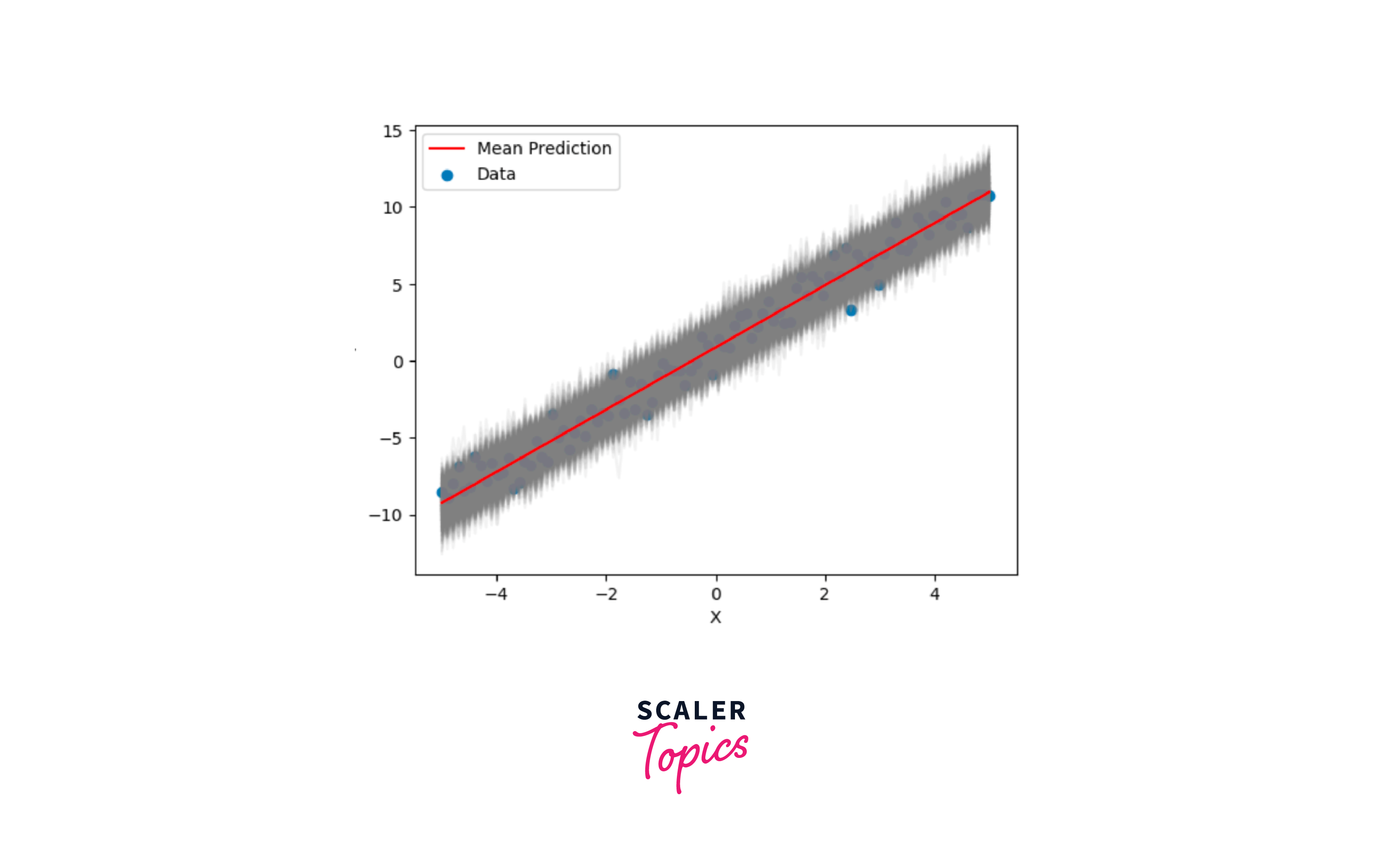 - Visualizing the Results Finally, let's visualize our results. We'll plot individual predictions as gray lines and the mean prediction as a red line, giving us a sense of both the model's uncertainty and its overall trend.